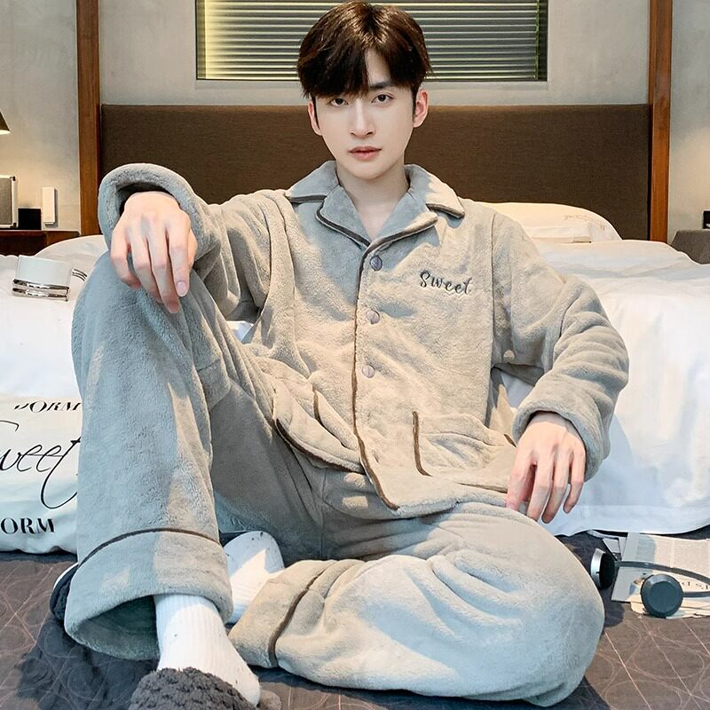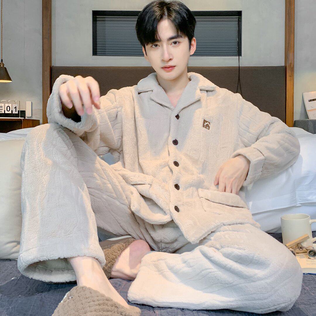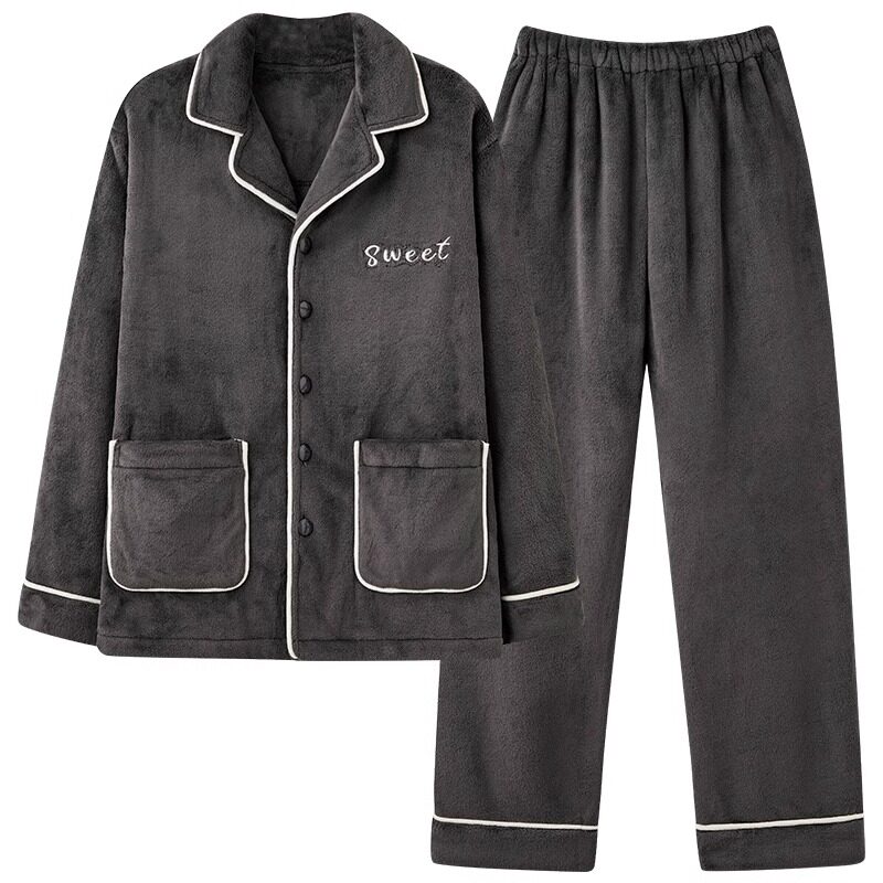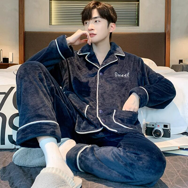 珊瑚绒睡衣男士秋冬款加厚加绒保暖法兰绒青少年冬季家居服男套装
