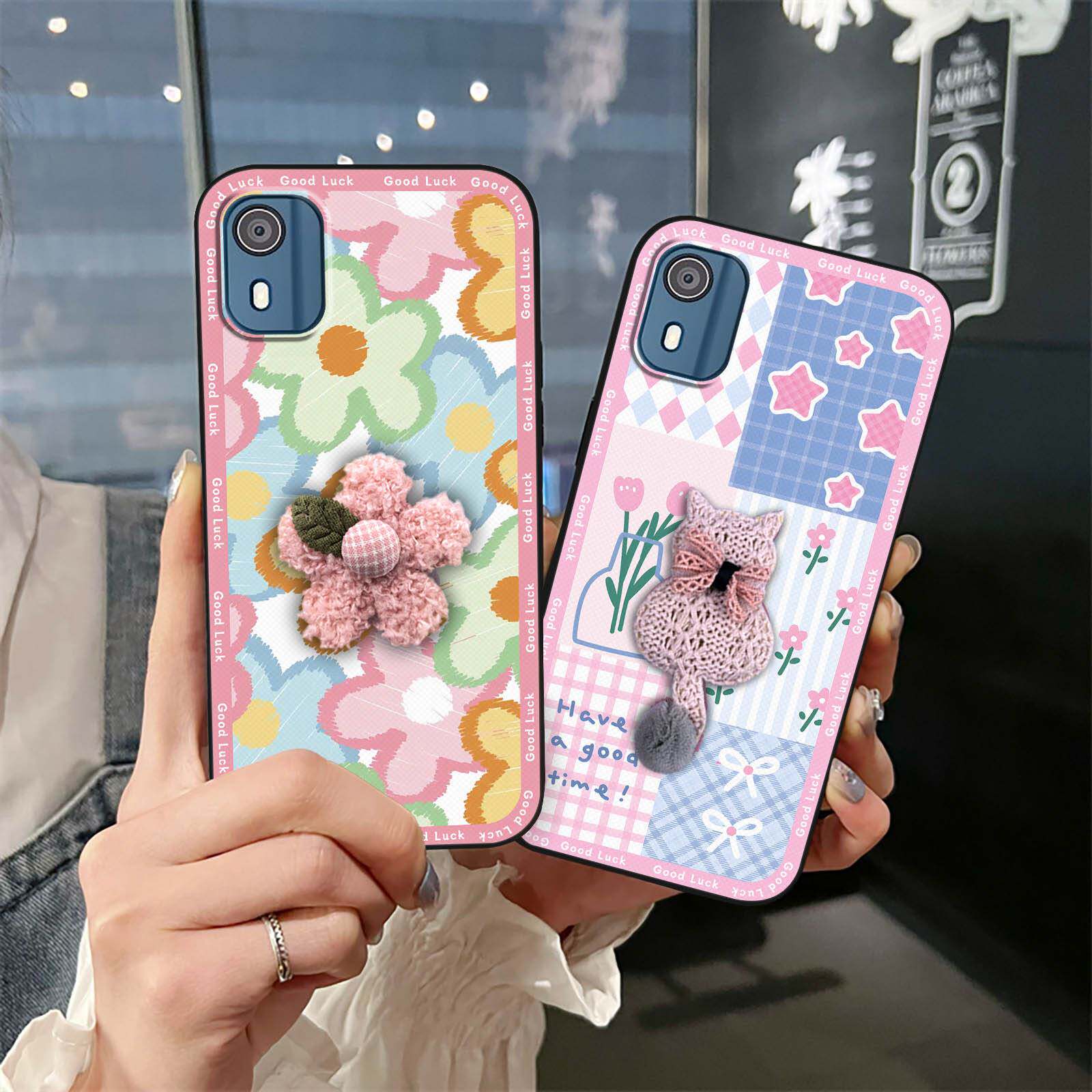 适用诺基亚C02/TA-1522手机壳毛绒动漫创意刺绣趣味纯色个性立体