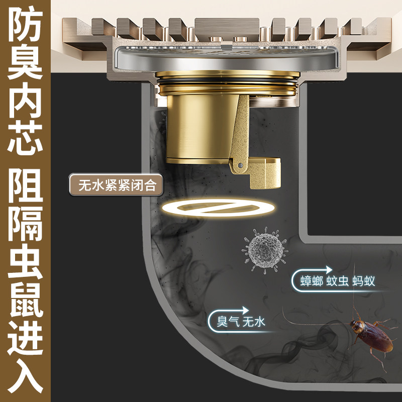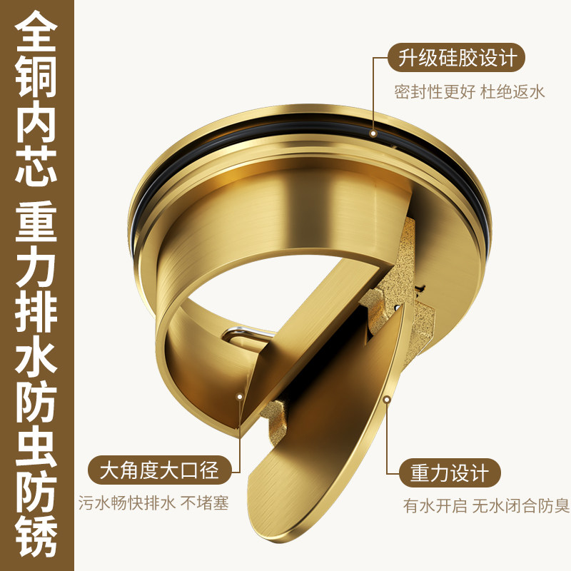 厨房卫浴淋浴地漏芯黄铜加厚弹跳防臭下水芯防堵防返水下水神器