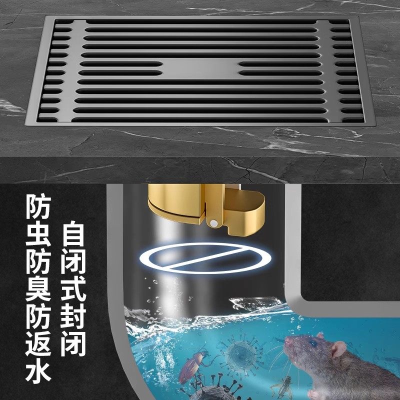 地漏全铜芯防臭卫生间隐形下水道长条浴室洗衣机黄铜排水方形淋浴