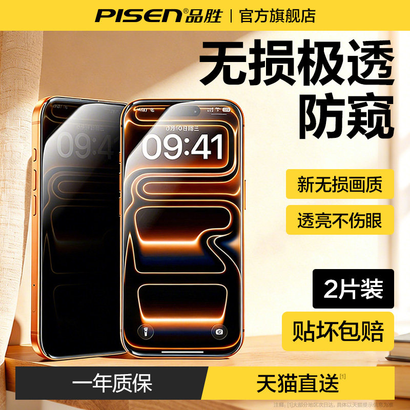 品胜适用iPhone17ProMax防窥膜16新款AR防窥钢化膜13全屏幕覆盖15Pro防摔贴膜11/XR保护膜14高清防偷窥ip12官