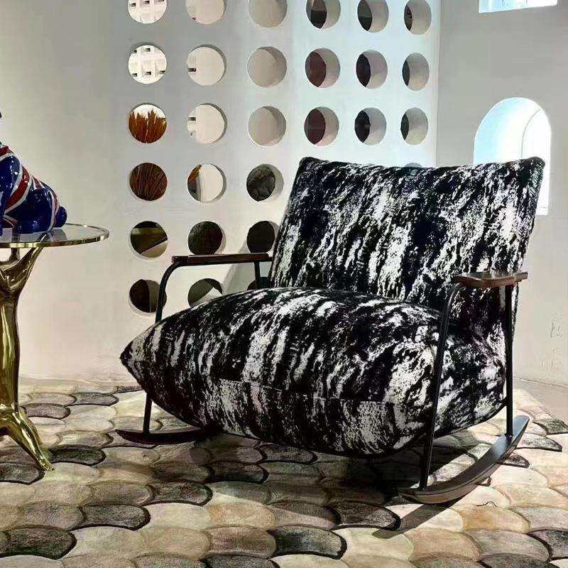 现代简约懒人沙发客厅阳台卧室书房碳素钢布艺雪橇椅设计师摇摇椅