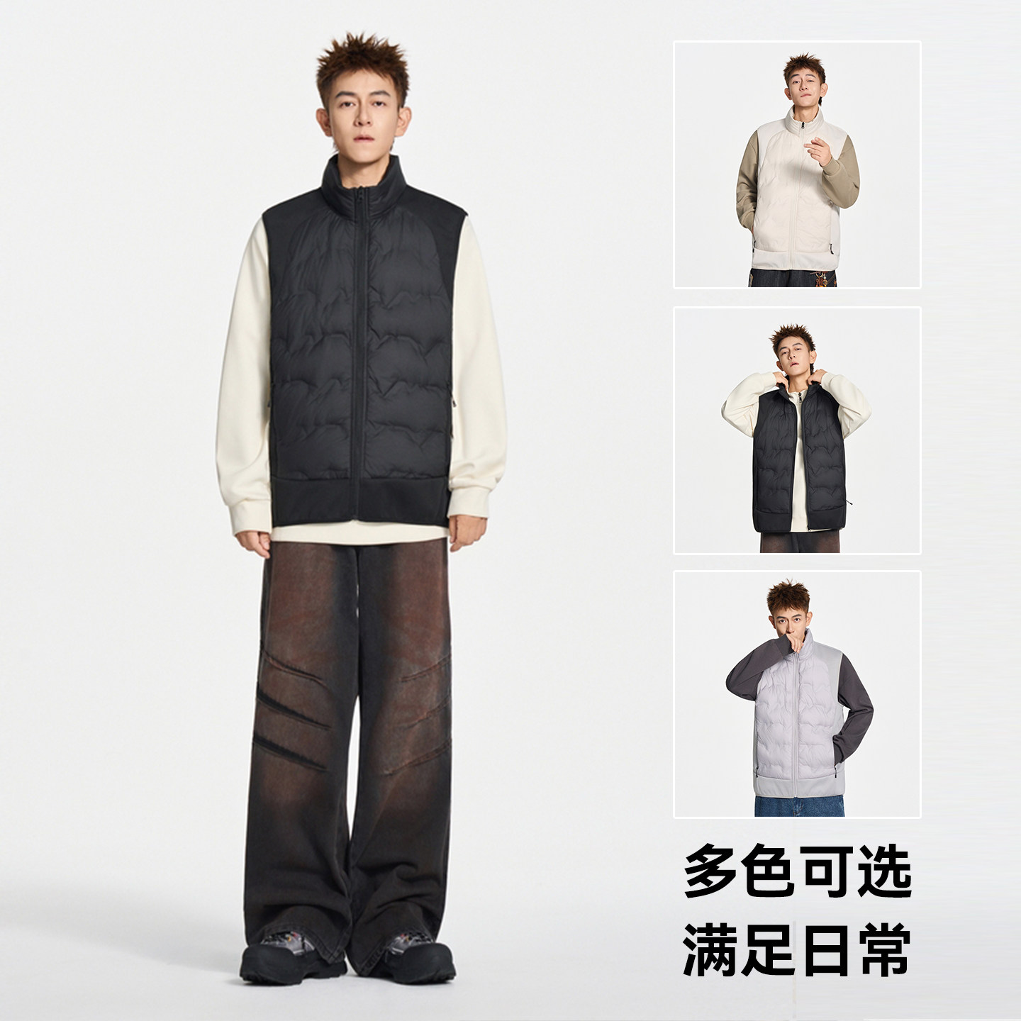 猫人羽绒马甲2025冬季新款男女时尚拼接情侣运动内搭保暖马夹坎肩
