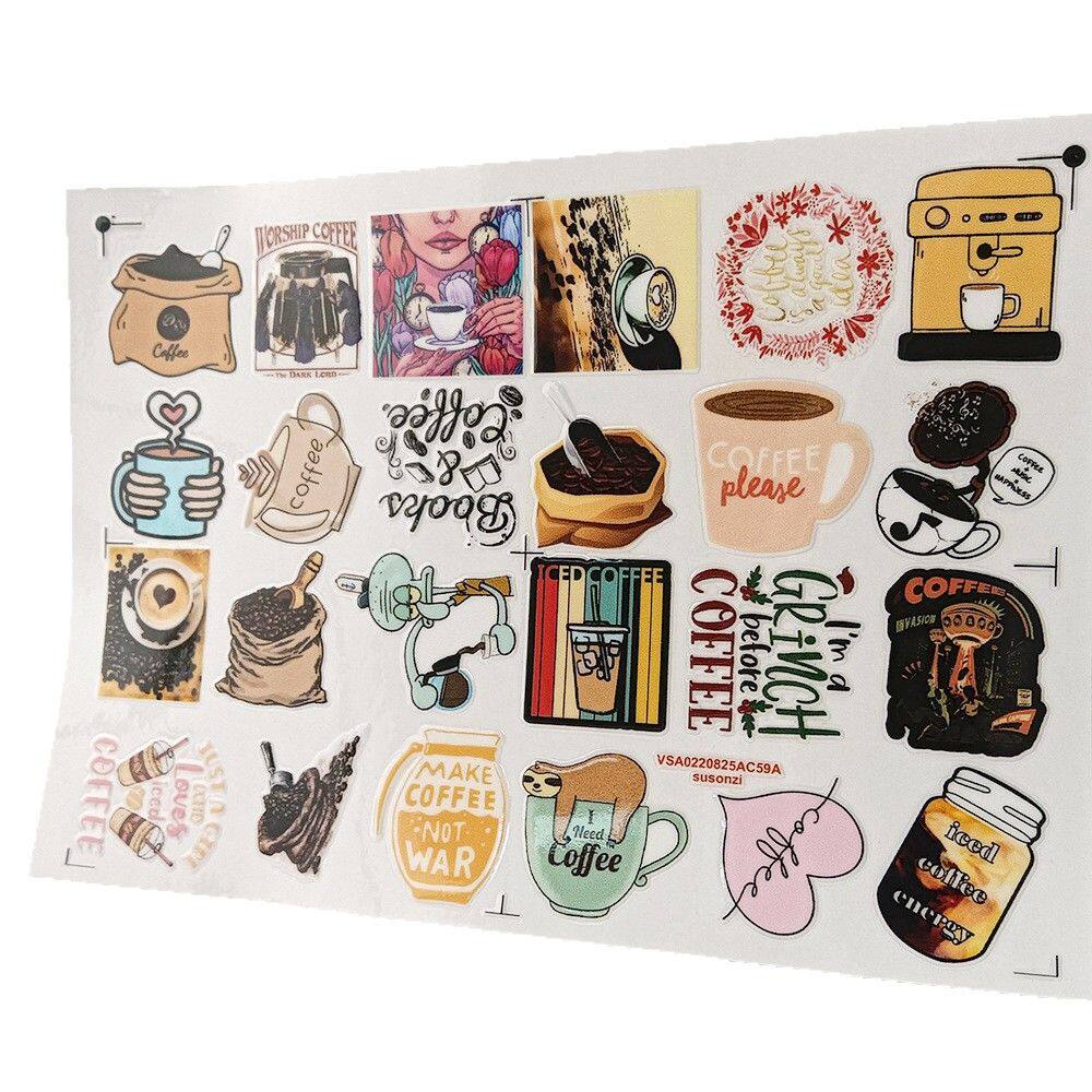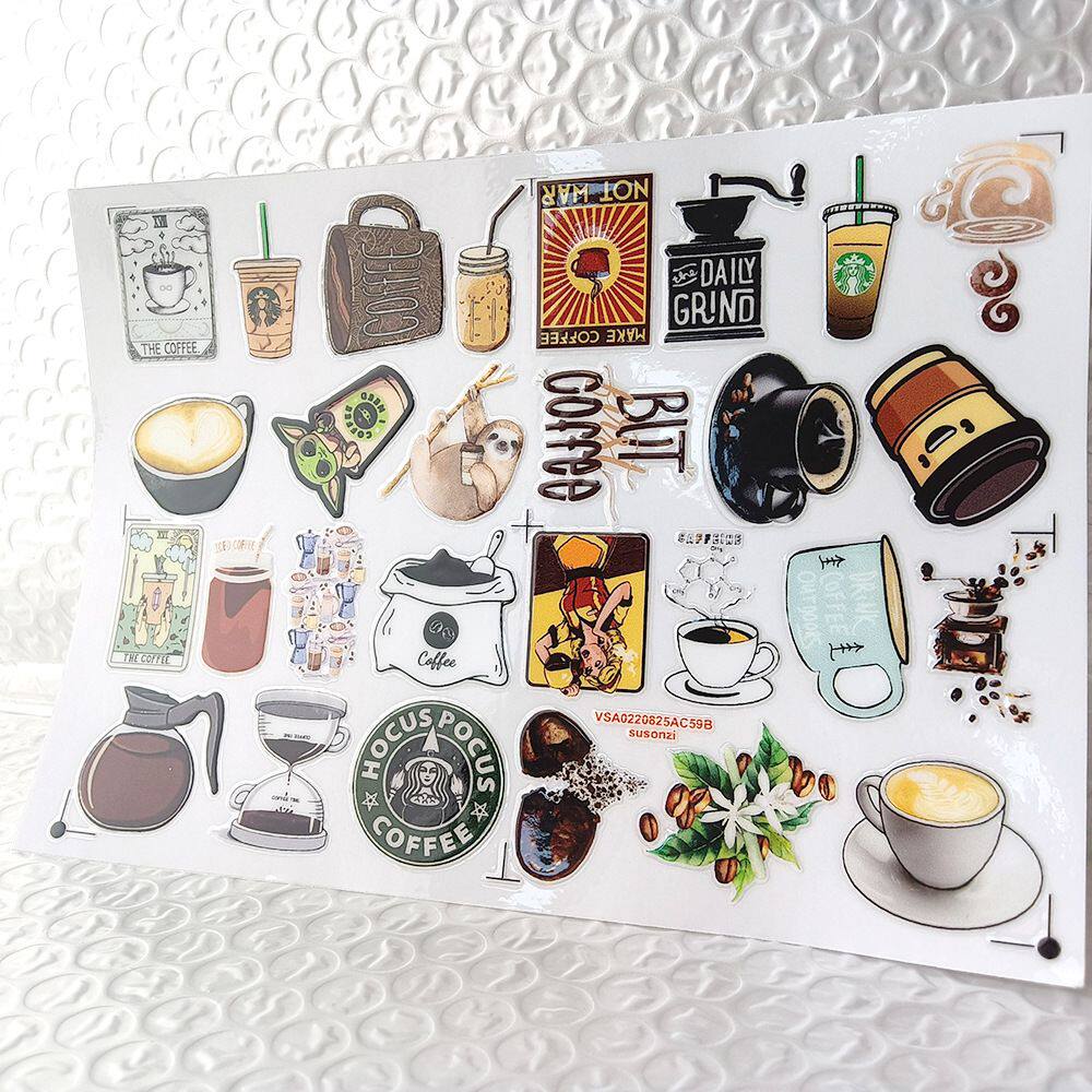 卡通咖啡涂鸦镂空立体防水笔牙刷水杯装饰贴纸UV转印贴水晶标定制