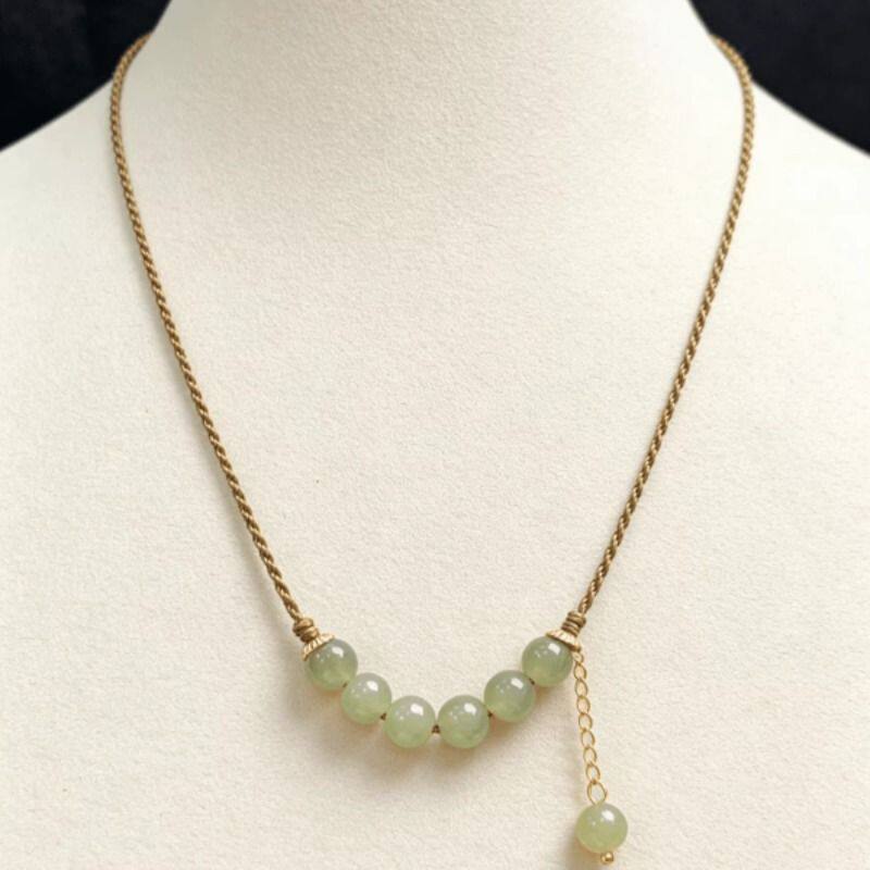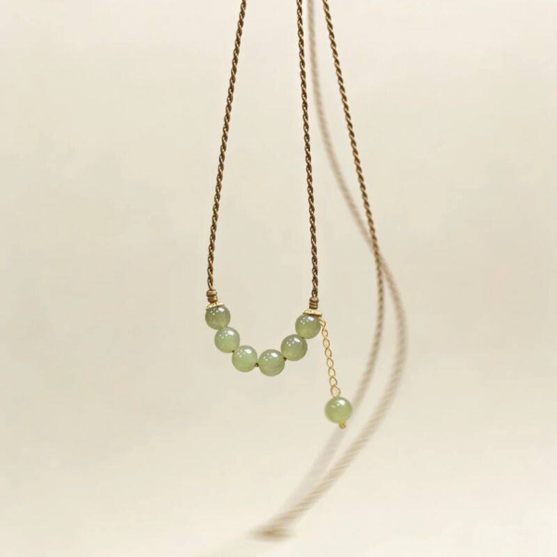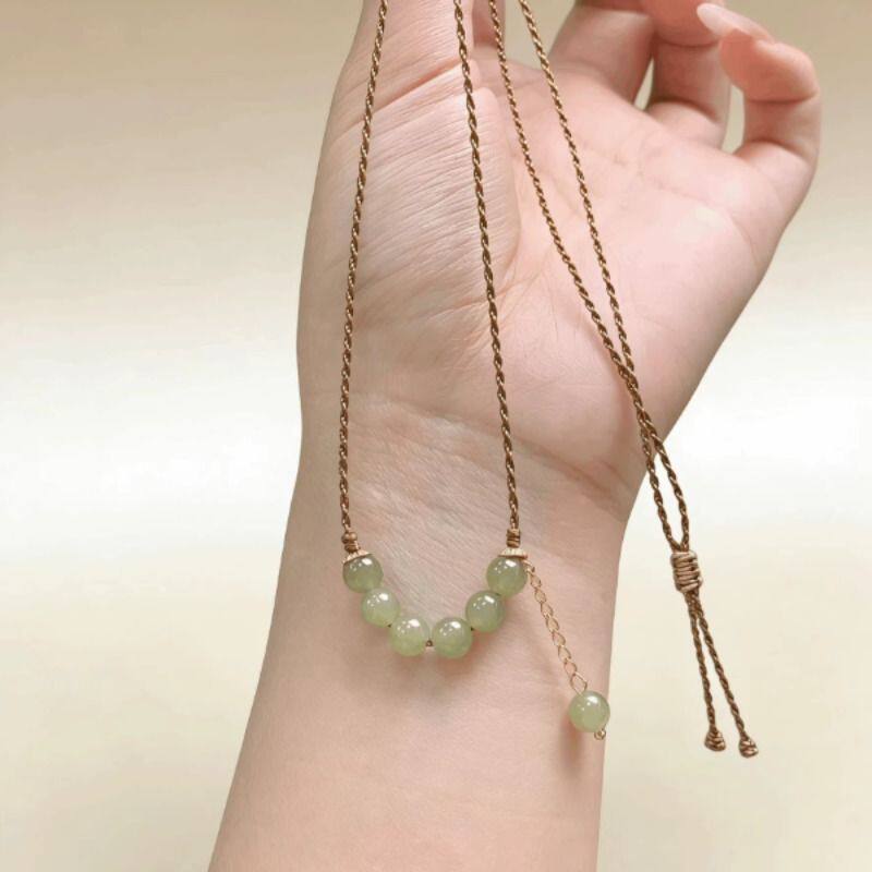 中玉智谷和田玉微笑项链6mm圆珠锁骨链 简约气质女款吊坠项链