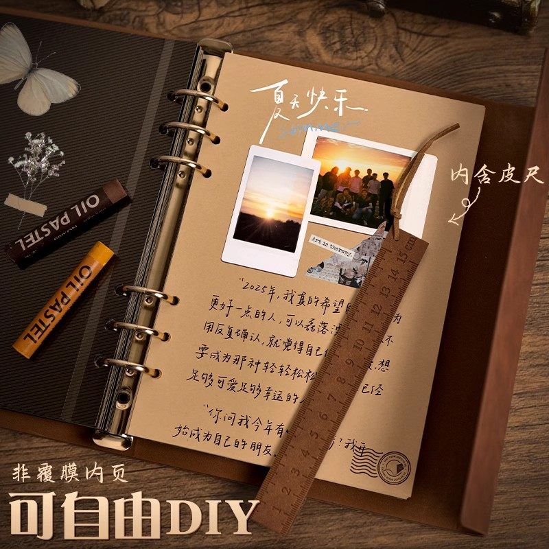 复古情侣相册本纪念册恋爱回忆录电影机票门票自粘式覆膜diy相册手工礼物手帐本拍立得照片明信片活页收纳册