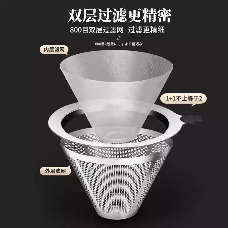 咖啡过滤漏斗滤纸手冲器具过滤器免滤纸超细滤网双层油脂加密细密