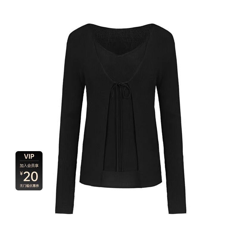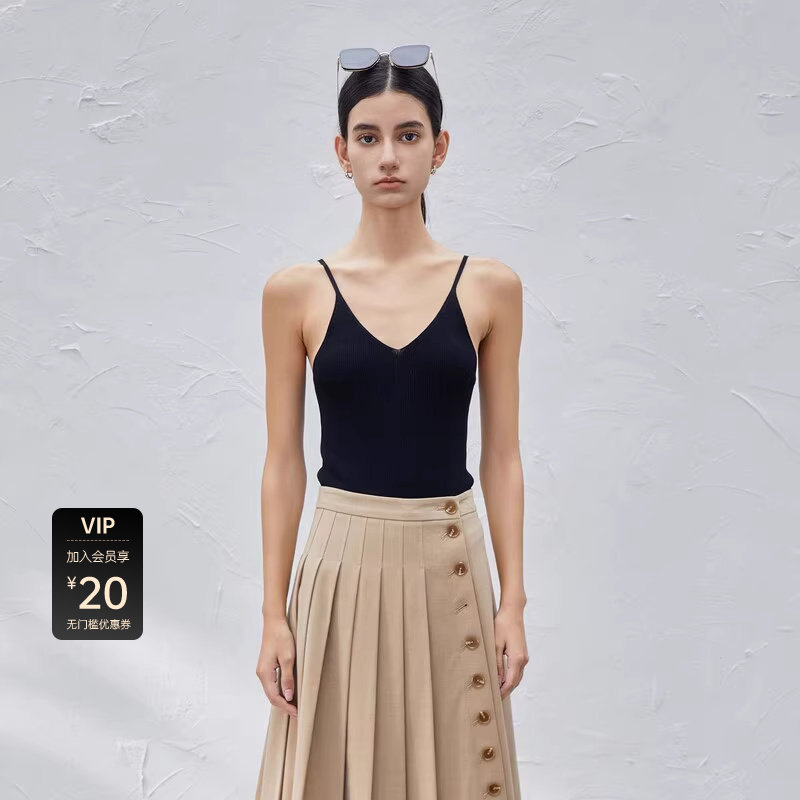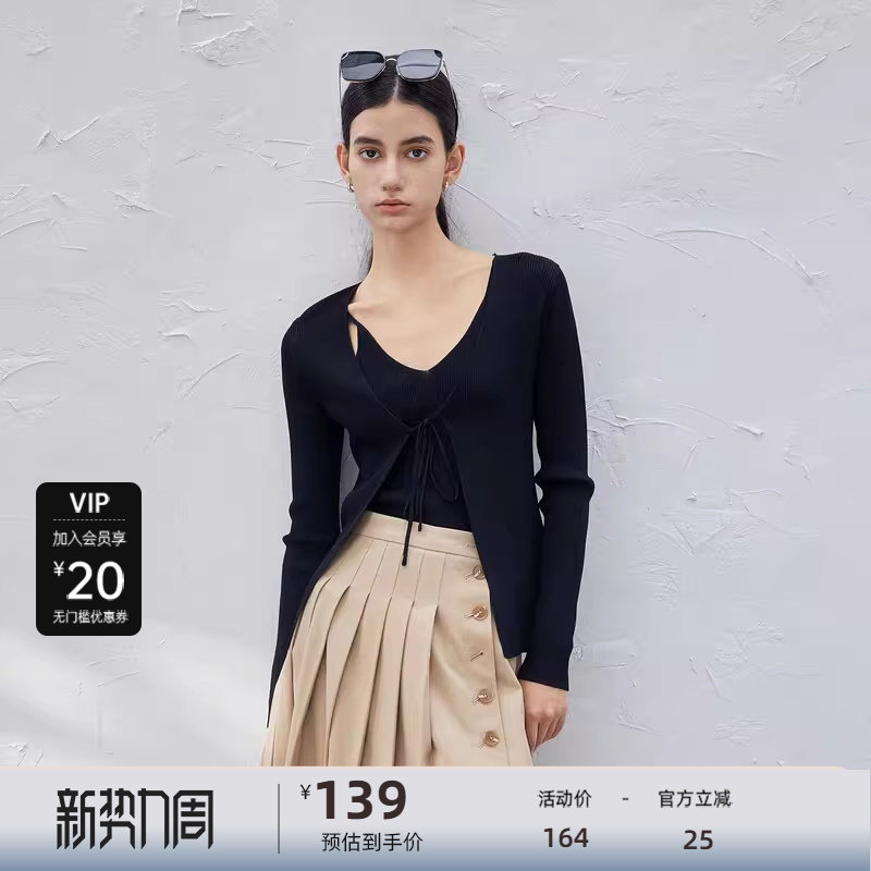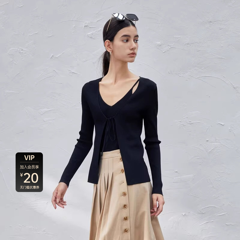 sdeer圣迪奥女装简约系带修身吊带两件套针织衫S23383508