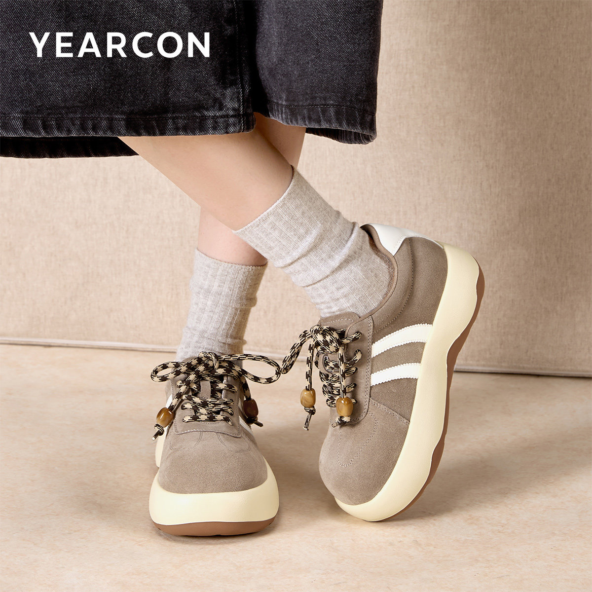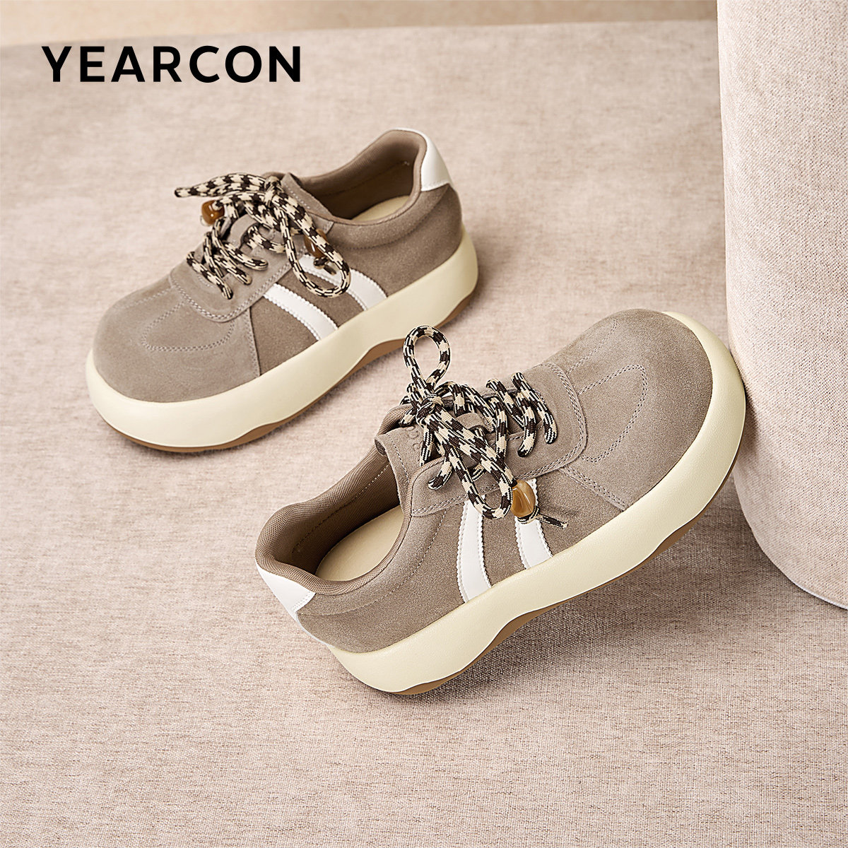 Chio2nd南风 4cm增高磨砂牛皮德训鞋子女款秋冬复古休闲鞋运动鞋
