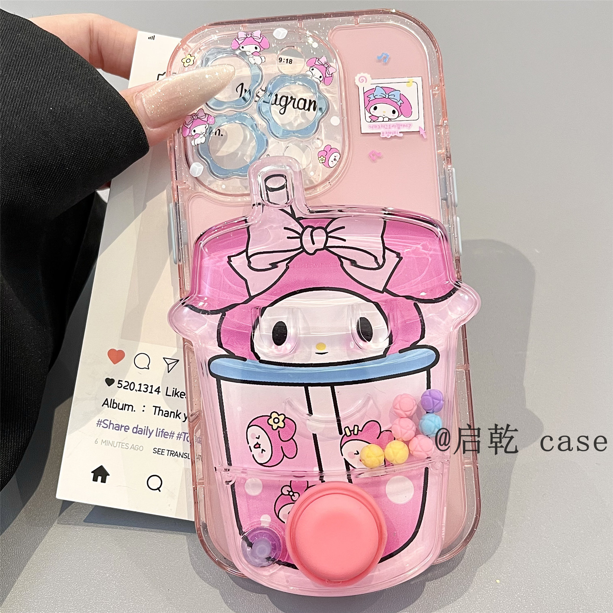 启乾 奶茶杯美乐蒂布丁狗游戏水机iPhone16/15手机壳适用苹果14/13promax硬壳少女心可爱卡通新款创意解压
