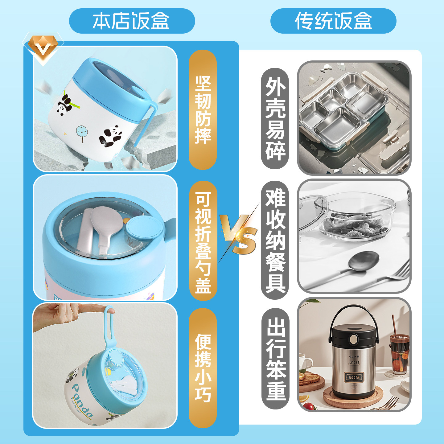 梵施家品保温饭盒双层304不锈钢大容量便携带饭桶上班族便当餐盒