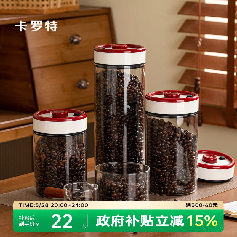 卡罗特咖啡豆密封罐咖啡粉食品级玻璃罐专用保存储豆收纳茶叶罐