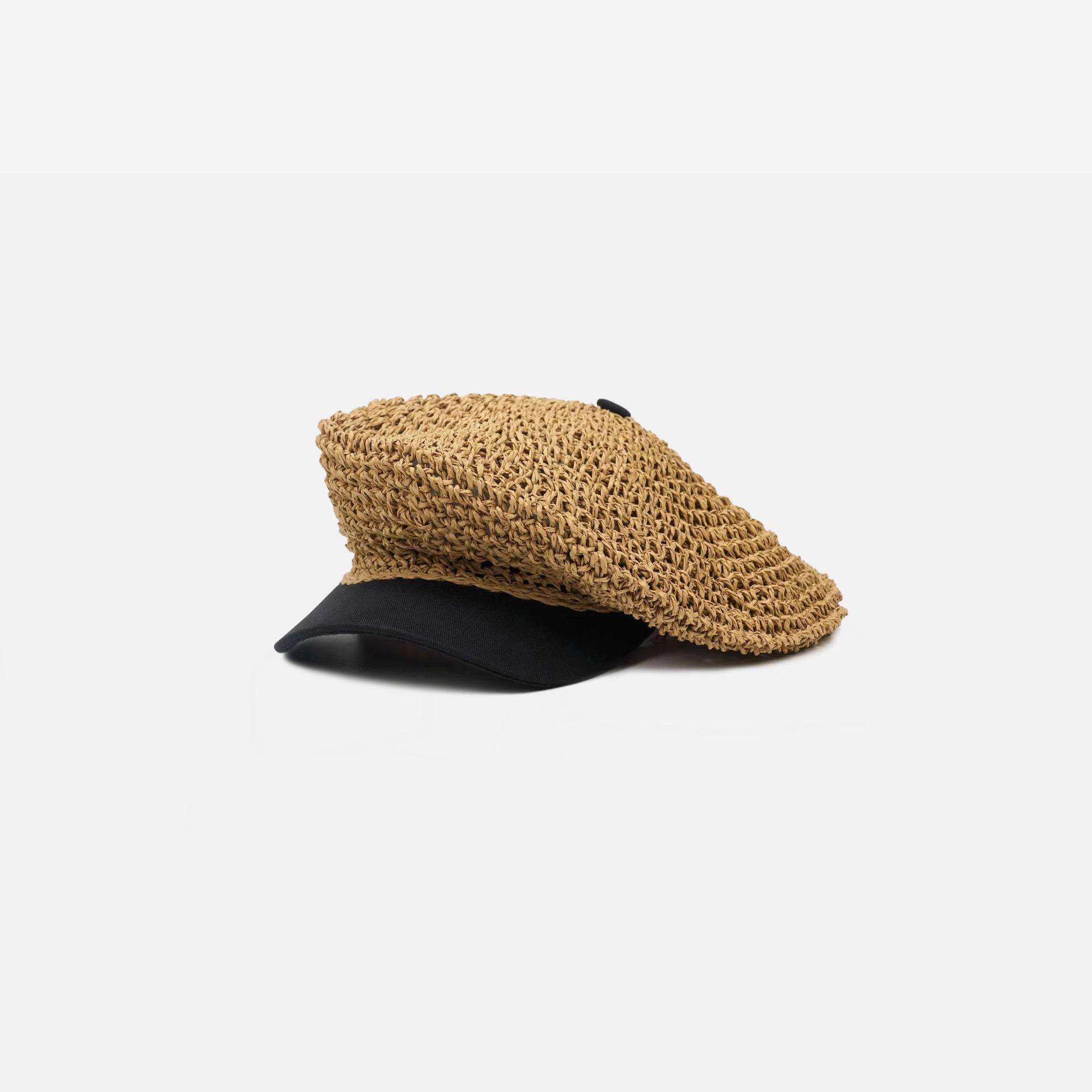 Classy key新加坡设计师联名款透气镂空草编画家帽子八角贝雷帽女