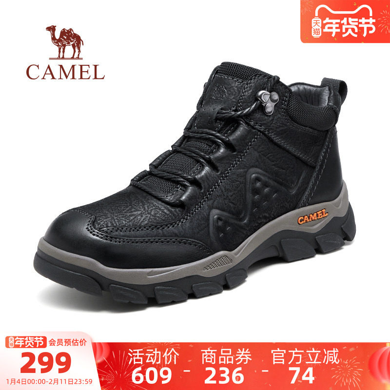 骆驼男鞋冬季新款高帮鞋加绒保暖东北雪地靴男棉鞋户外徒步工装靴