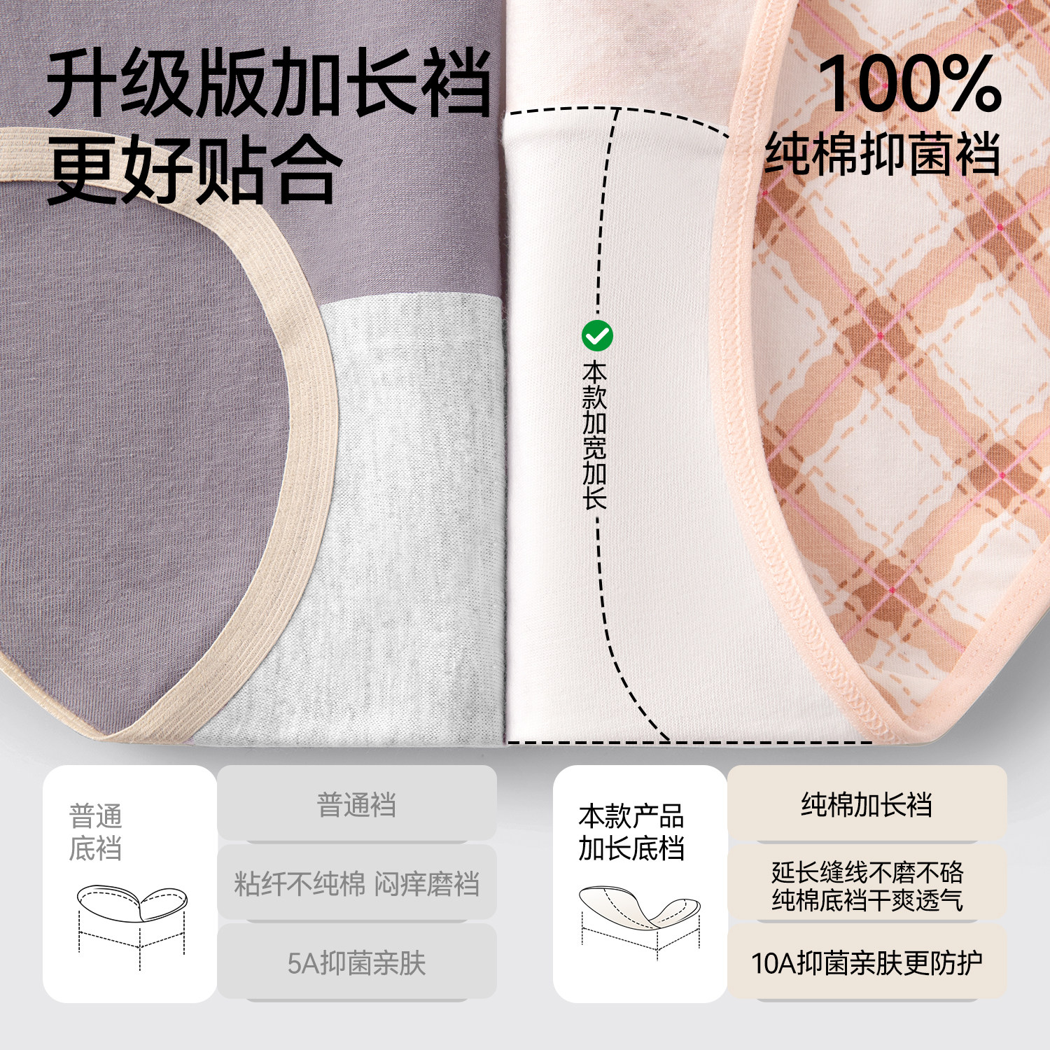 妇炎洁牌内裤女2025新纯棉抗菌全棉裆中高腰加长底裆无痕舒适三角