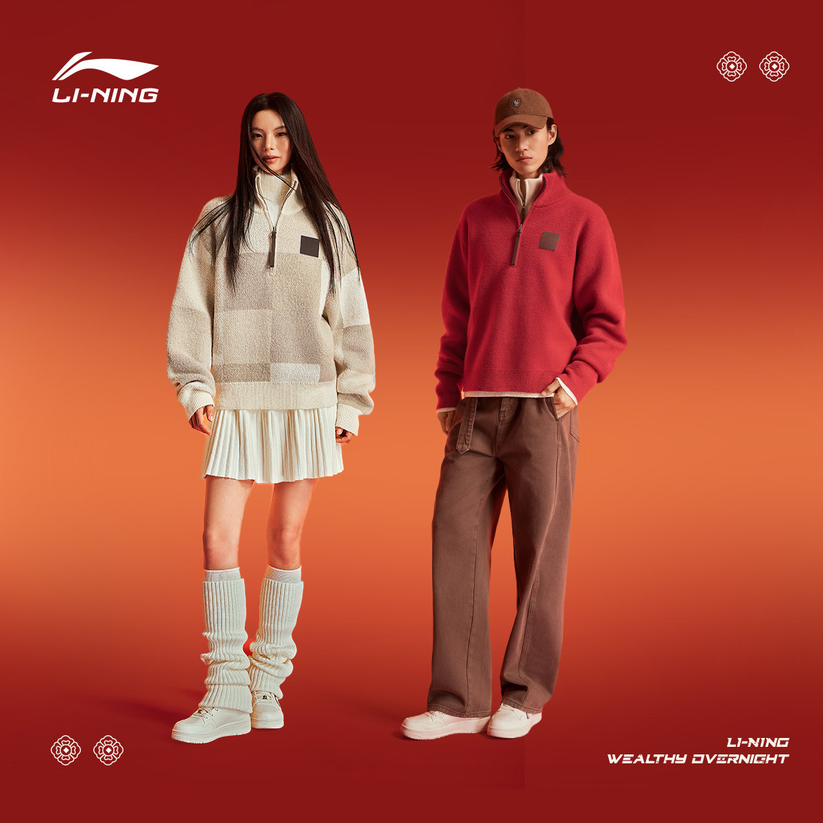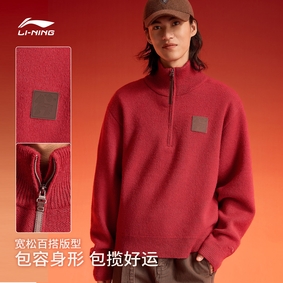 李宁马上有钱毛衣女春季2026新款情侣新年红色编织衫男马年运动服