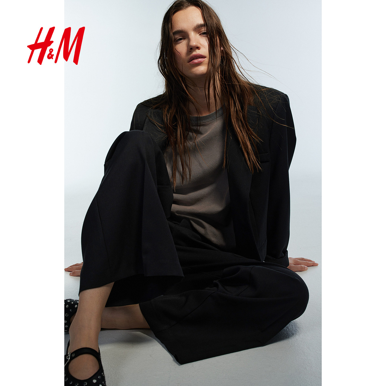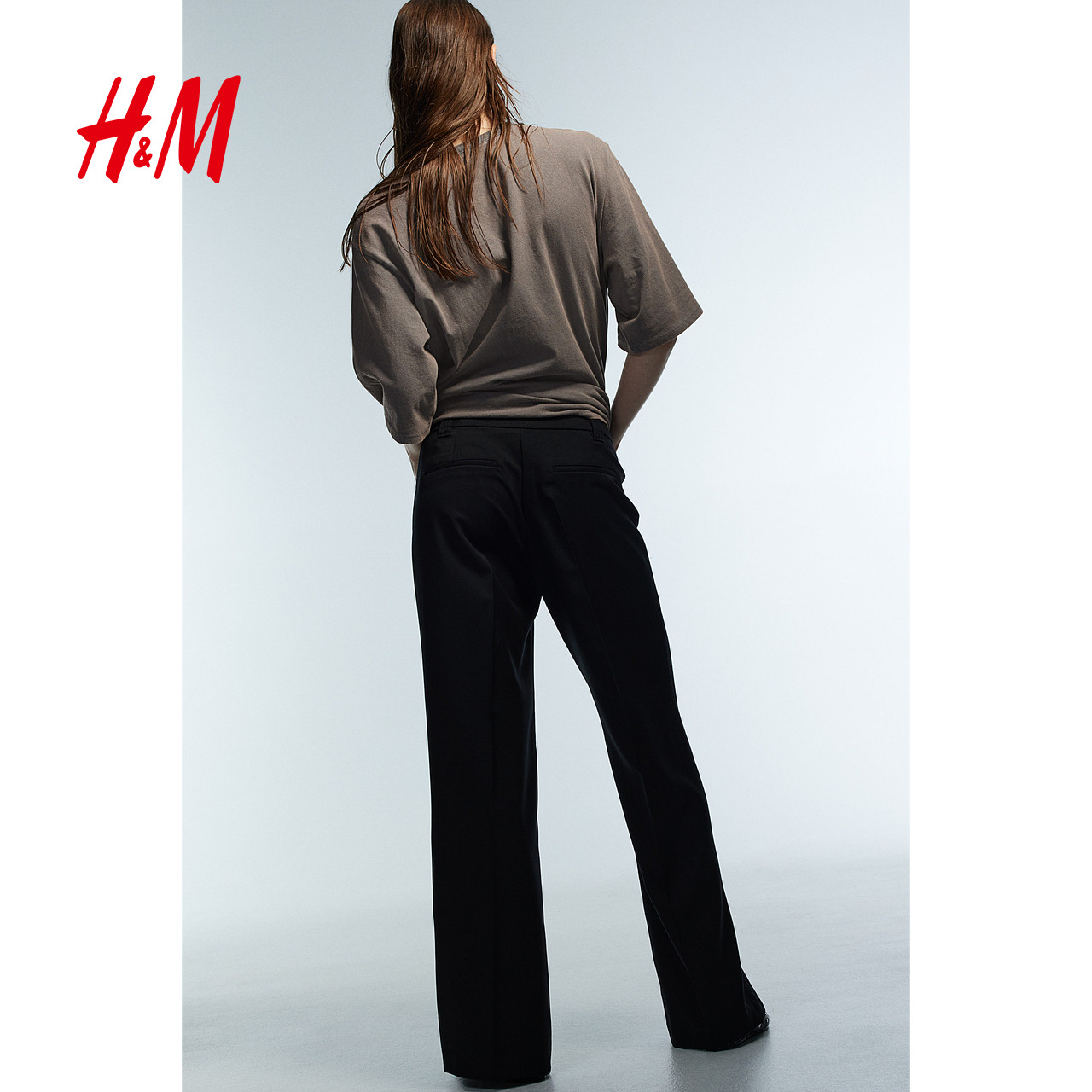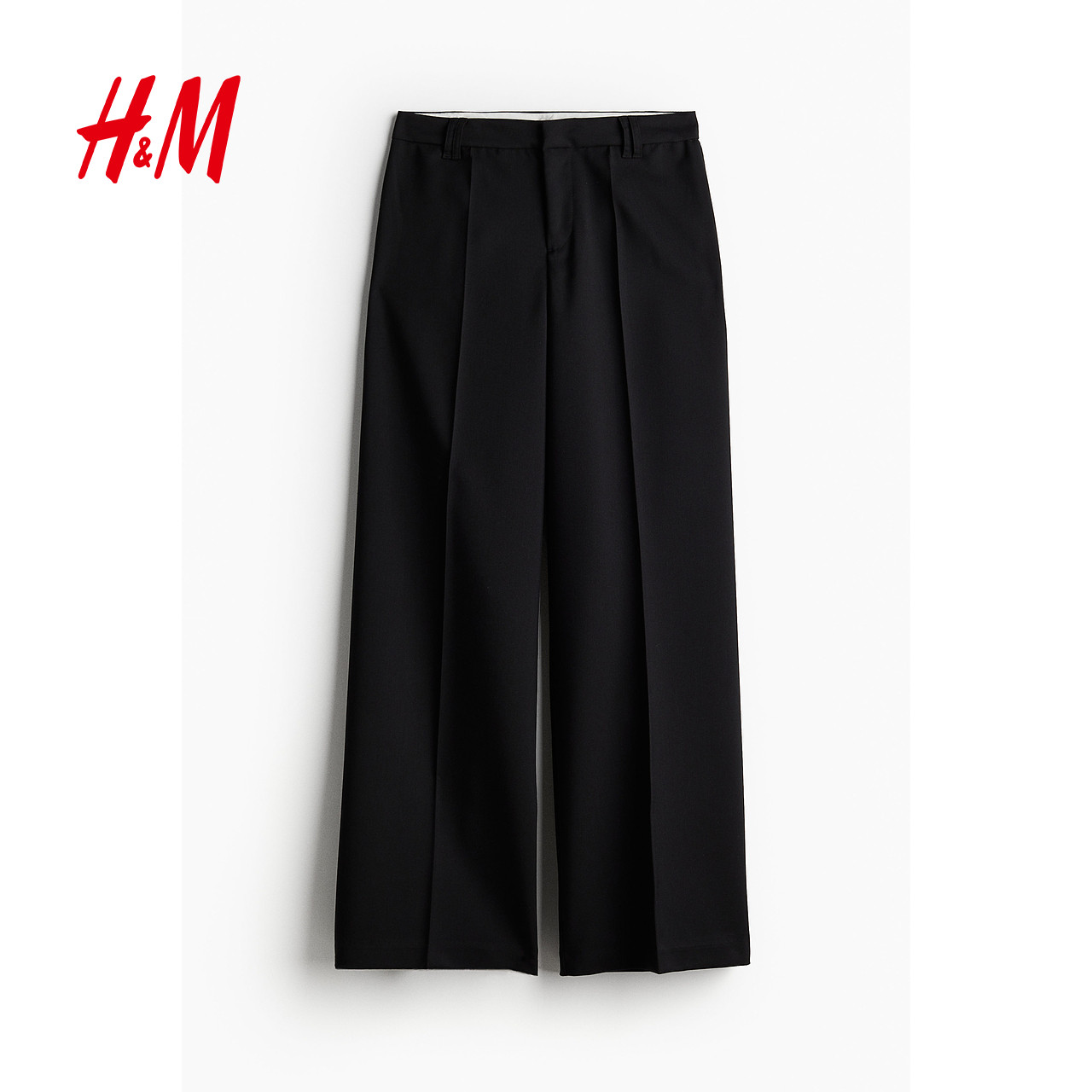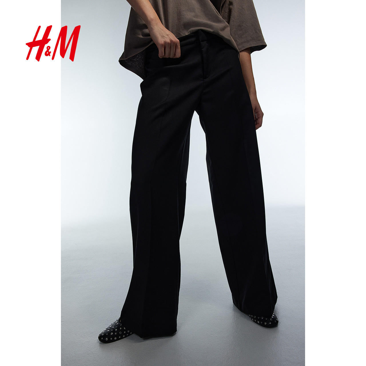 HM女装裤子2025冬季中腰斜纹阔腿直筒通勤休闲职业西裤1230818