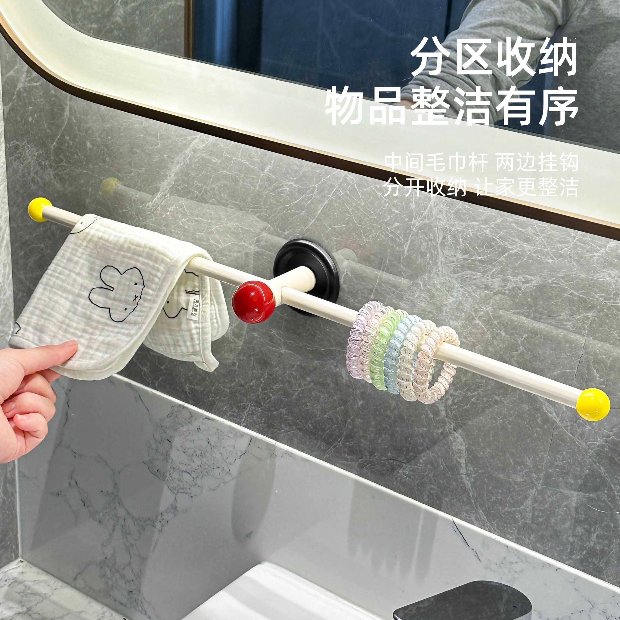 多巴胺毛巾架卫生间免打孔毛巾挂杆浴室壁挂式置物架浴巾收纳架子