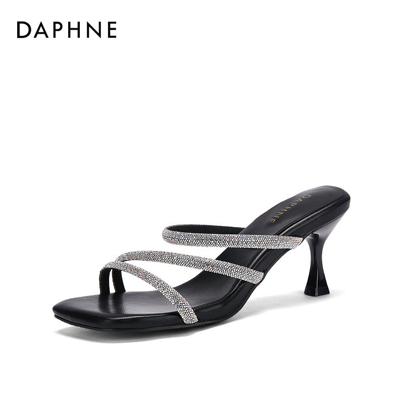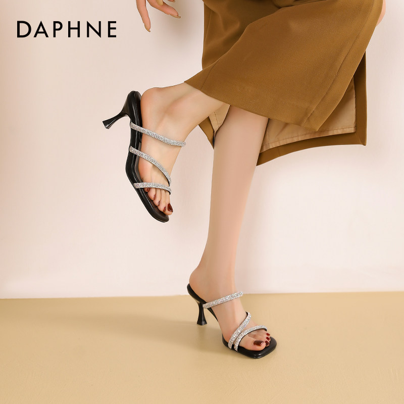 达芙妮水钻拖鞋女夏外穿时尚百搭女鞋软底高跟凉鞋女款半凉拖女夏