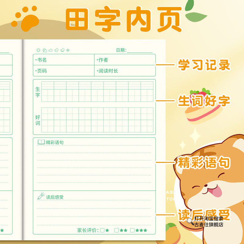 读书笔记本初中生专用好词好句摘抄本小学生阅读记录卡专用本二三年级四五六语文好段摘记本日积月累积累本