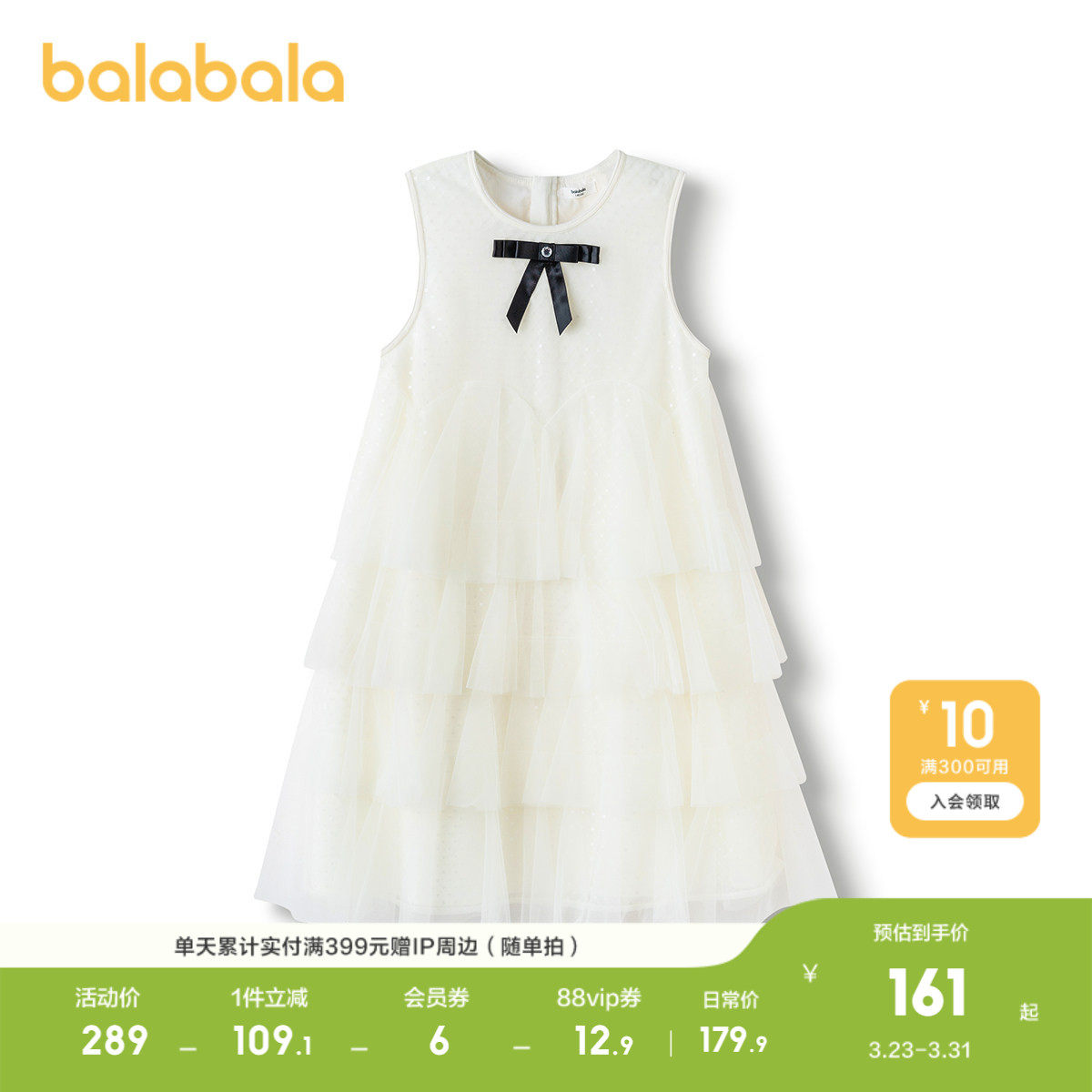 【商场同款】巴拉巴拉女童裙子儿童连衣裙夏装无袖网纱公主裙休闲
