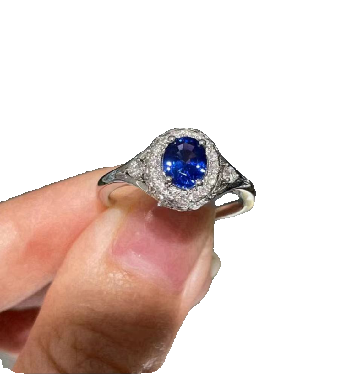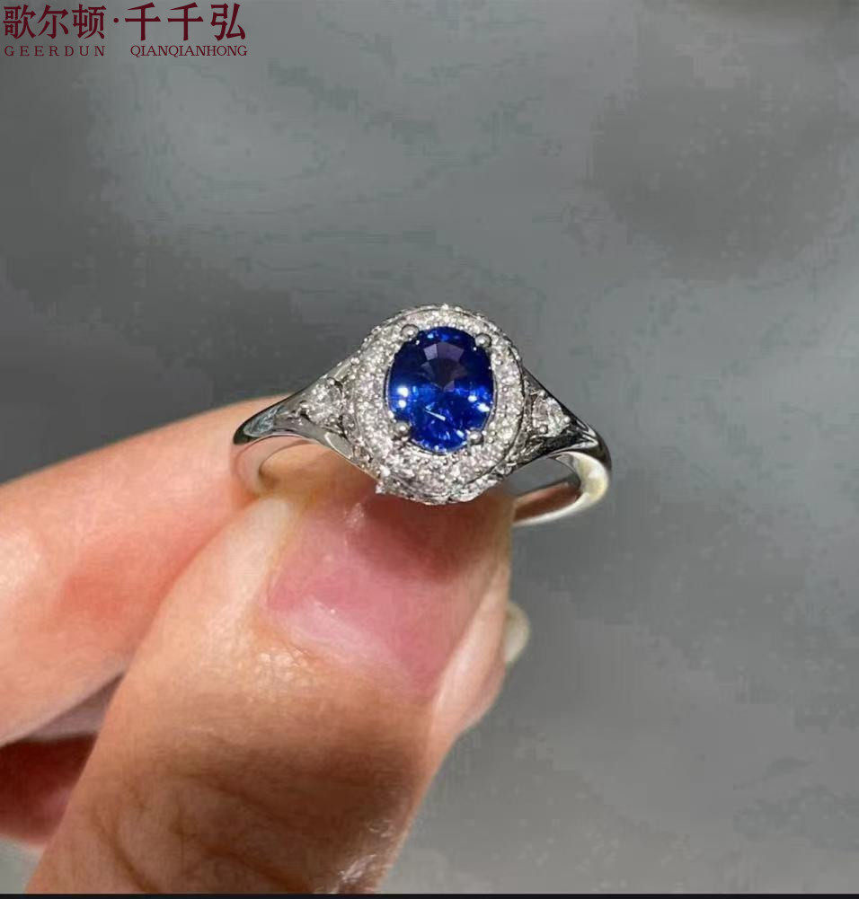 新品18K白金镶嵌天然斯里兰卡蓝宝石戒指女支持复检正品保证包邮b