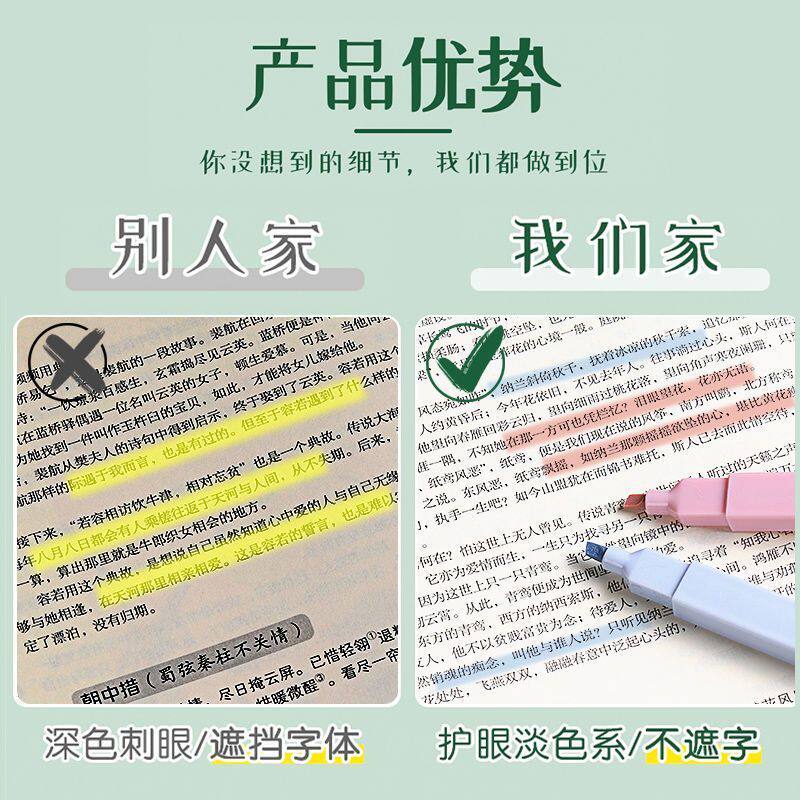 三年二班护眼荧光笔高颜值荧光标记笔学生用多色记号笔彩色划重点手帐手账笔做笔记本马卡龙淡色萤光笔银光笔