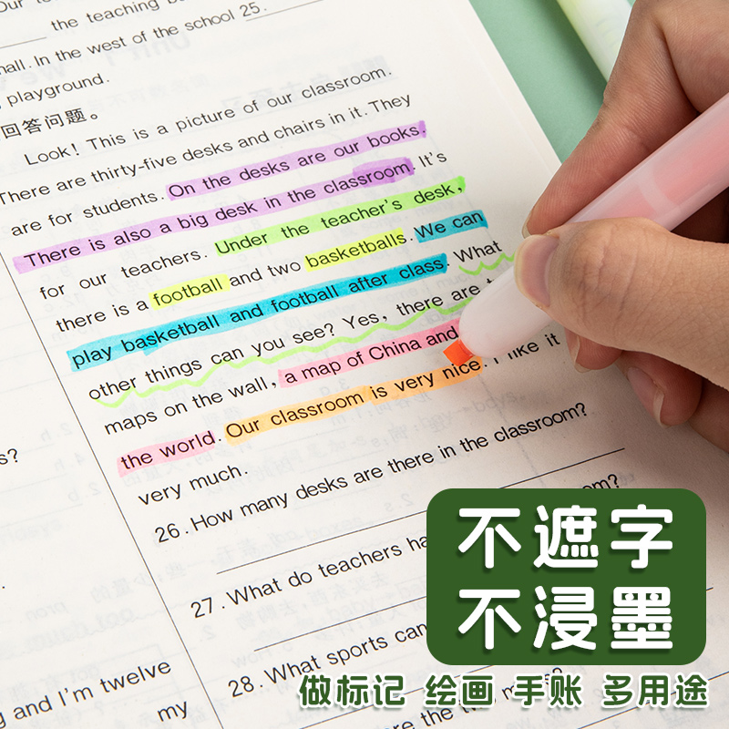 三年二班护眼荧光笔高颜值荧光标记笔学生用多色记号笔彩色划重点手帐手账笔做笔记本马卡龙淡色萤光笔银光笔