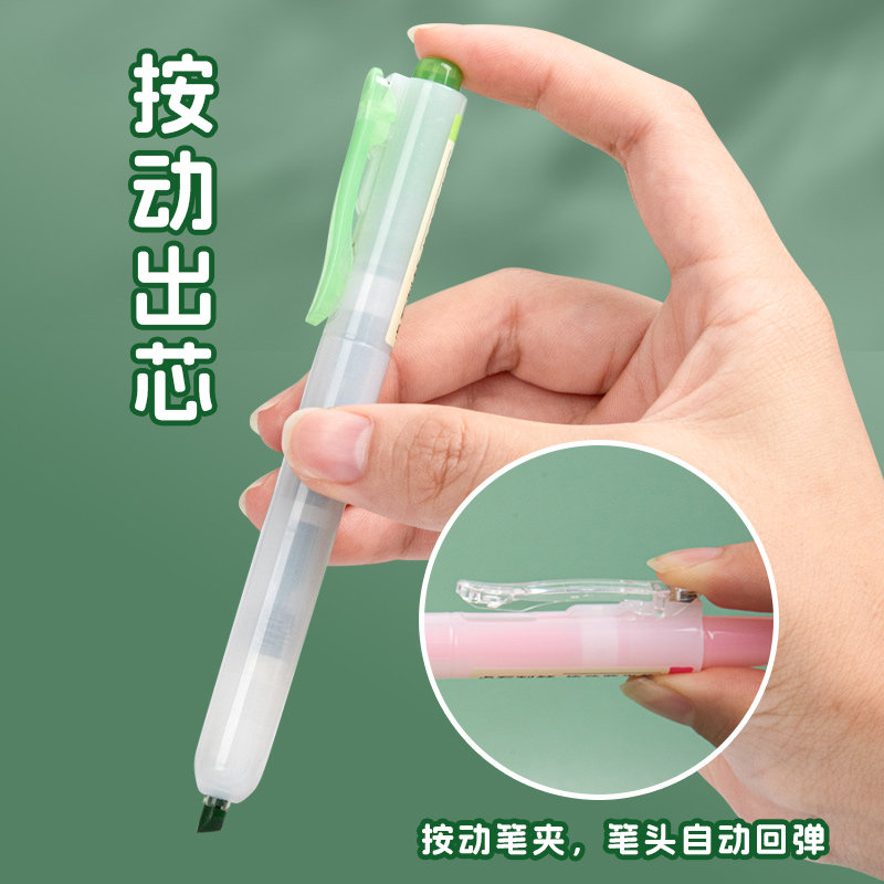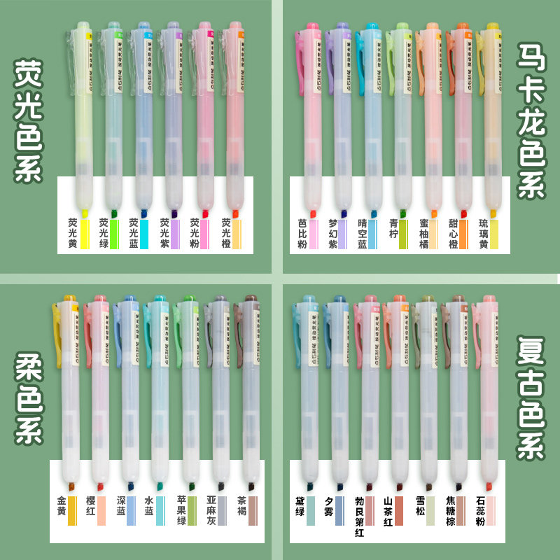 点石按动荧光笔记号笔彩色划重点标记笔学生用不晕染高颜值护眼淡浅色马卡龙复古色系手帐单支只绿红紫金黄色
