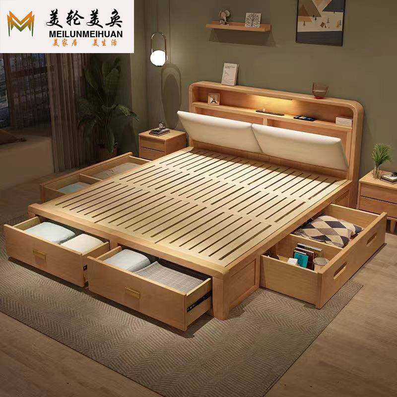 实木高箱床1.2米小户型床现代简约抽屉双人床1.8米抽屉主卧收纳床