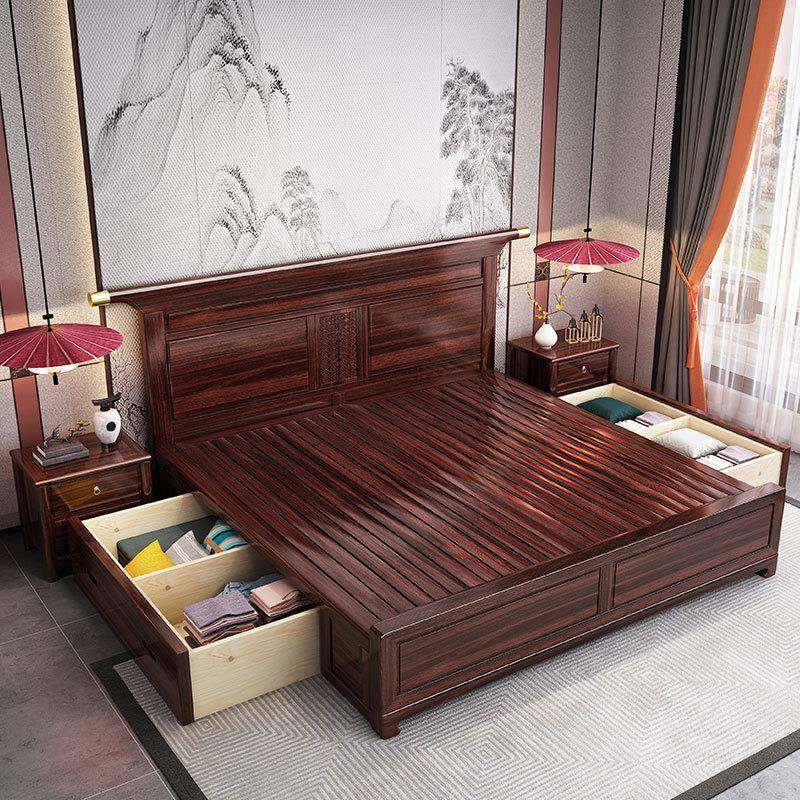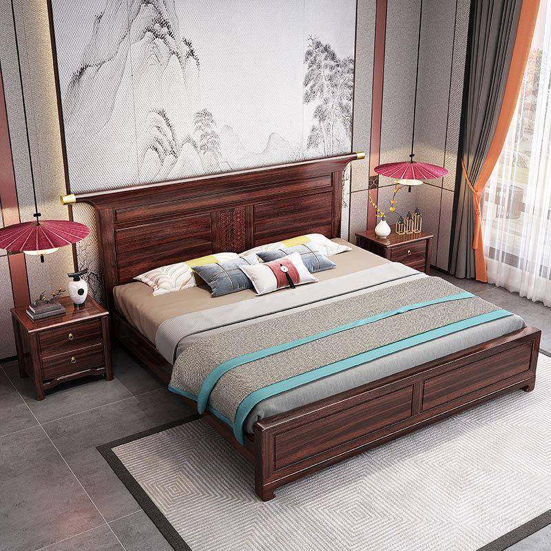 新中式乌金木实木床卧室1.8米主卧轻奢品质现代双人大床奢华家具