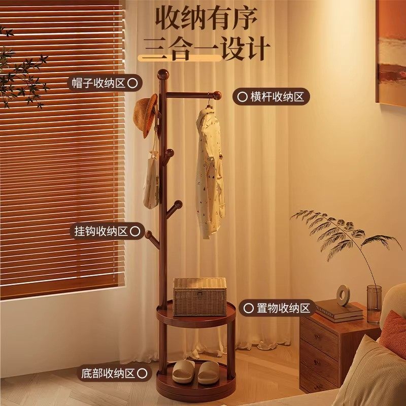 挂衣架实木落地卧室衣帽架客厅简约现代新中式民宿衣架置物可移动
