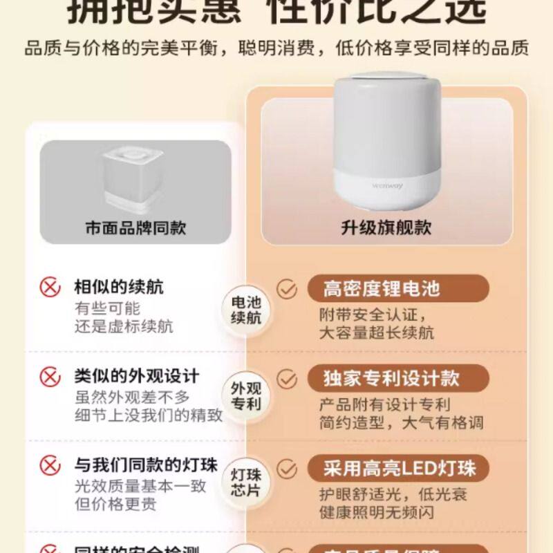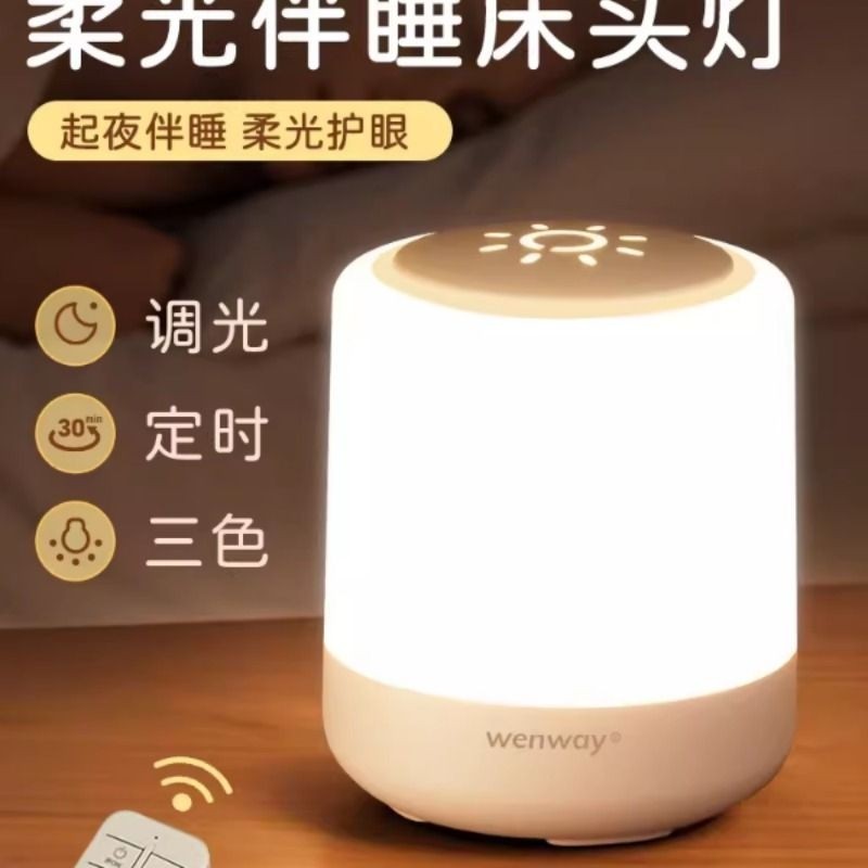 温唯遥控充电小夜灯卧室床头灯触摸拍拍灯台灯婴儿喂奶护眼睡眠灯