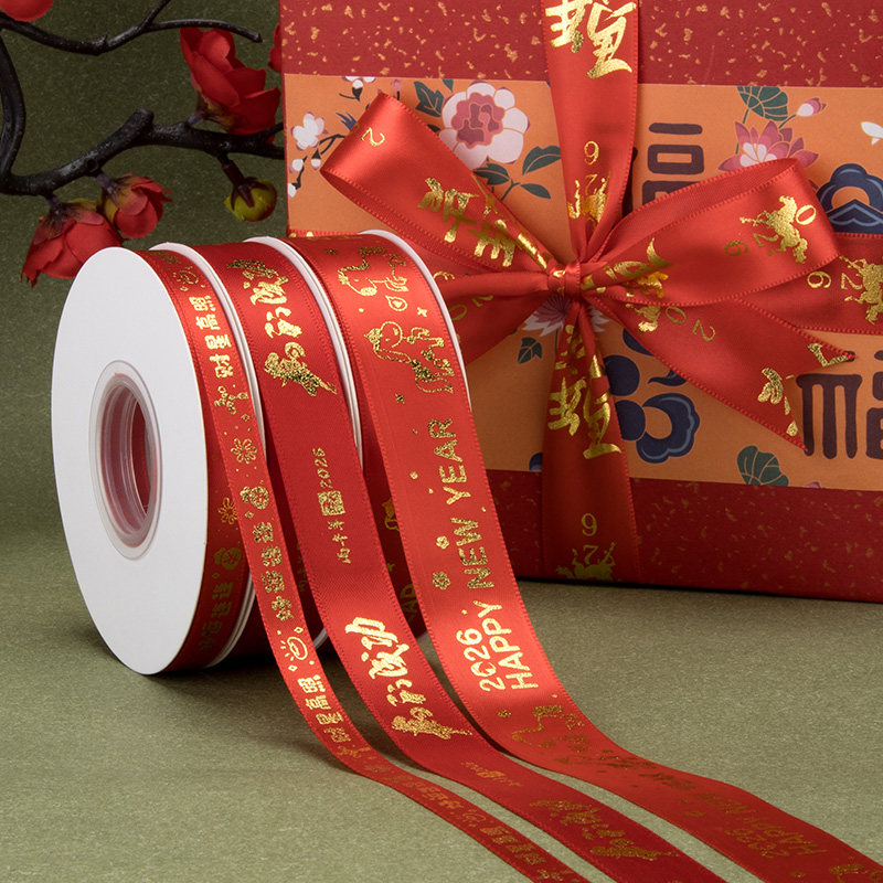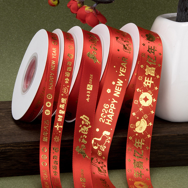 2026款新年丝带 马年大吉喜迎新春 鲜花花束礼盒包装新年喜庆彩带