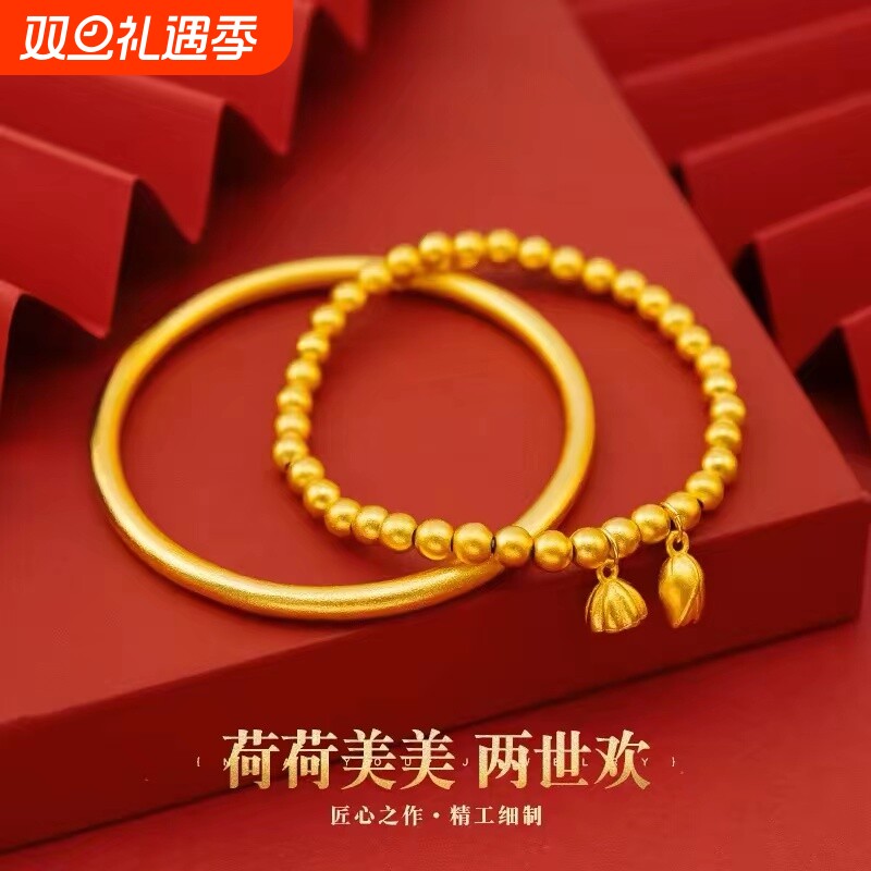 越南沙金实心素圈古法传承手镯黄金仿真正品两世欢手链结婚首饰
