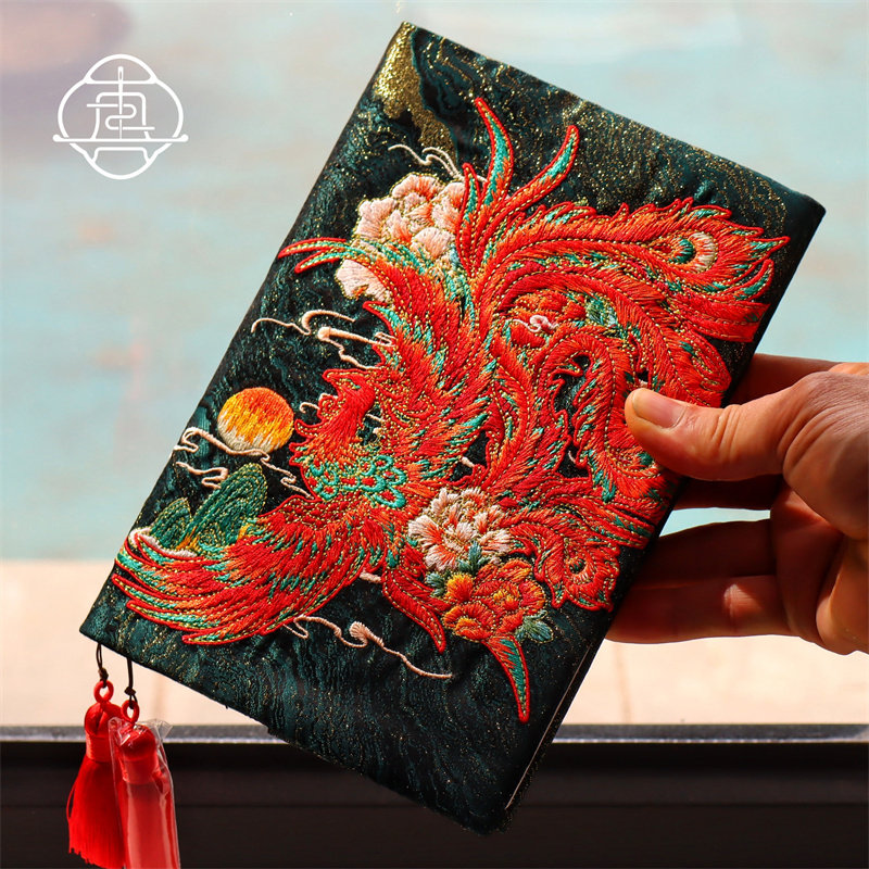 真我 凤凰涅槃 原创国风刺绣手工布书衣手账手帐本日记A5A6笔记本
