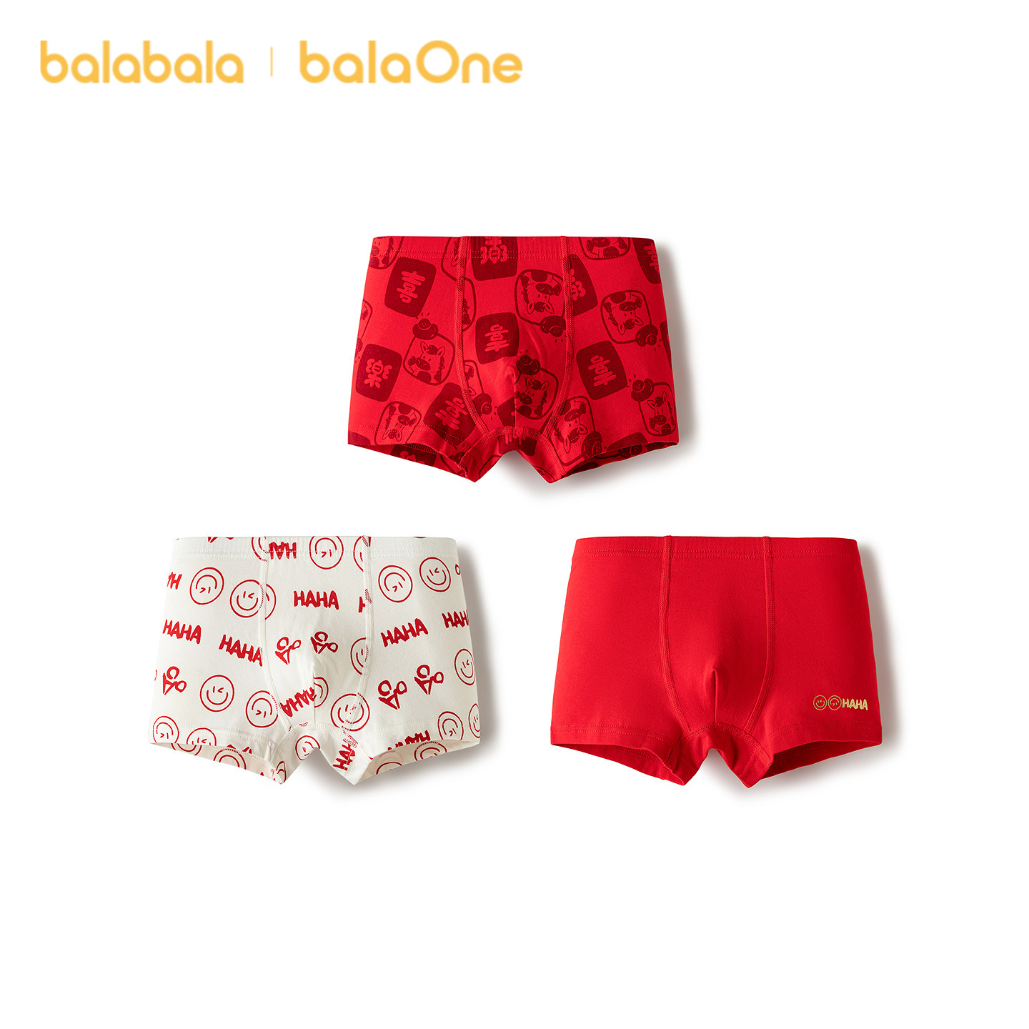 【balaOne】巴拉巴拉儿童内裤棉男童不夹pp抗菌裆四角短裤三条装