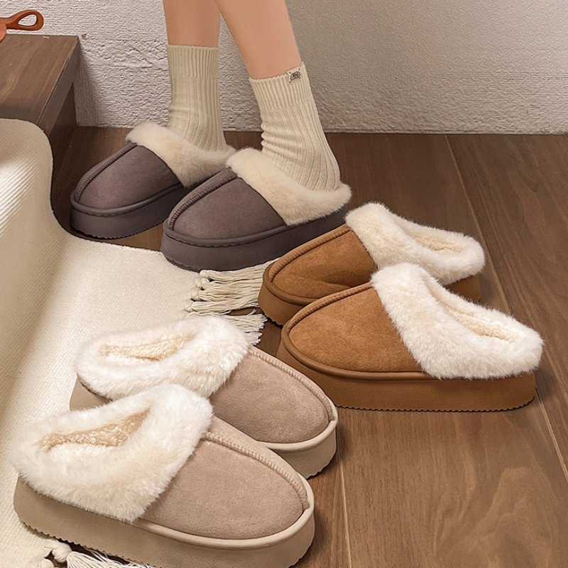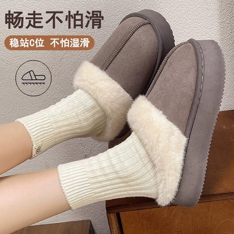 低帮厚底雪地靴女2025新款冬季懒人一脚蹬毛毛棉鞋加绒加厚女鞋子