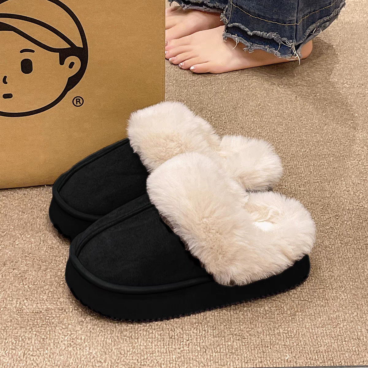 雪地靴女2025新款冬季加绒加厚厚底保暖包头棉拖鞋黑色毛绒鞋子