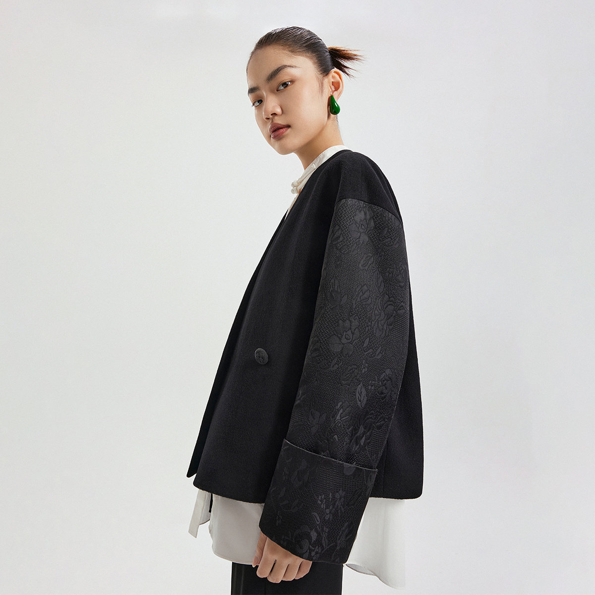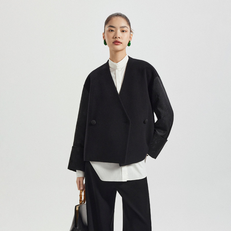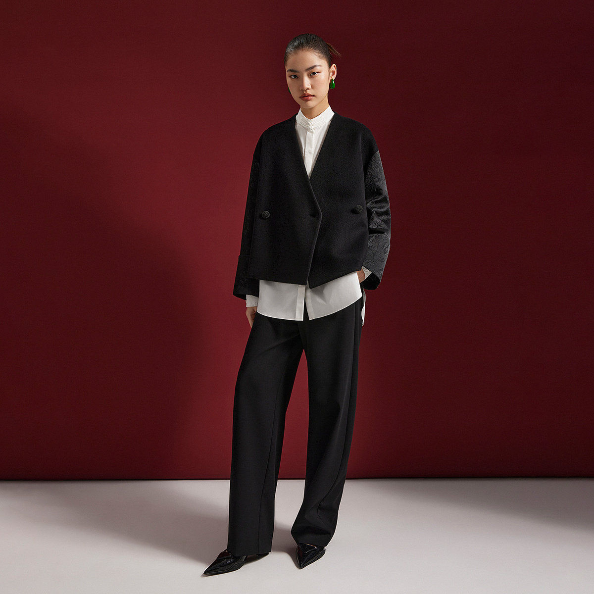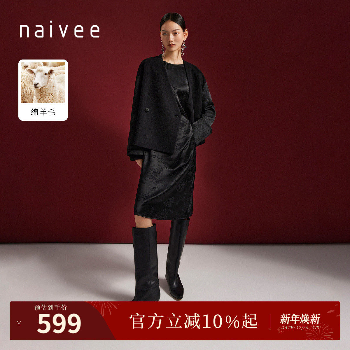 【喜愿·新中式】商场同款naivee国风秋纯绵羊毛高冷毛呢子外套女
