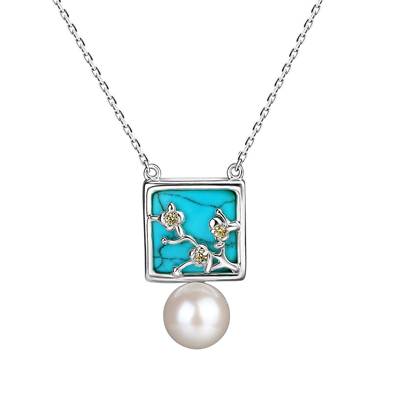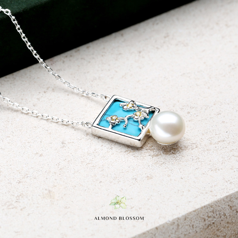 MGS盛开的杏树S925银项链女珍珠吊坠新中式国风锁骨颈链新年礼物