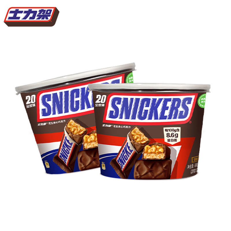 士力架花生夹心巧克力400g*2桶运动补充能量棒休闲办公小零食糖果
