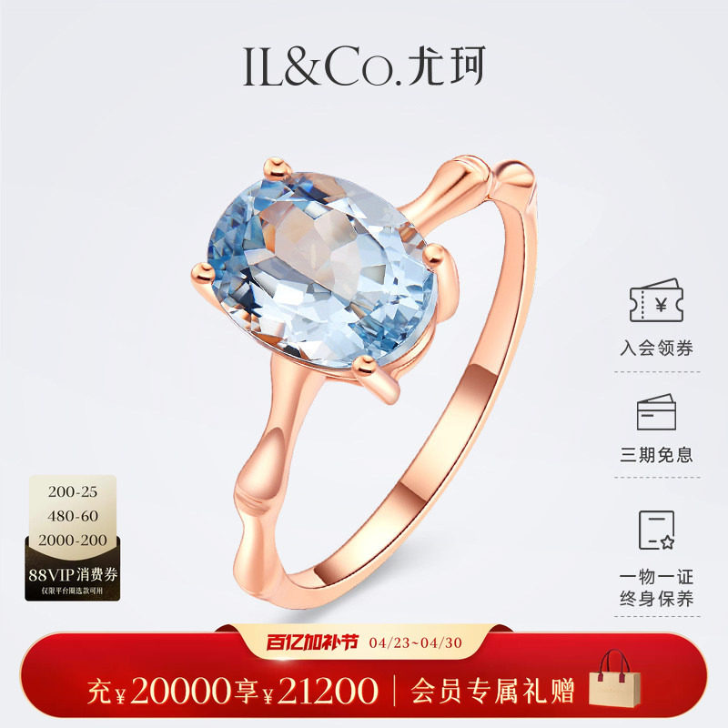 ILCO尤珂「竹节序曲」18k金海蓝宝戒指宝石复古天然彩宝镶嵌女戒