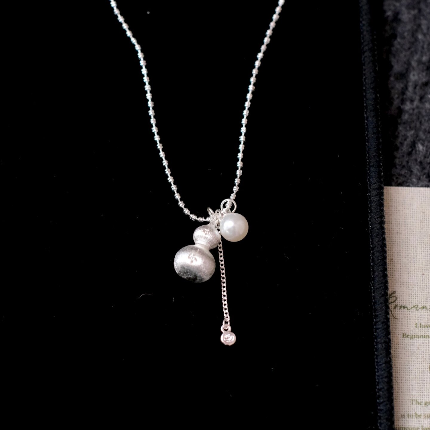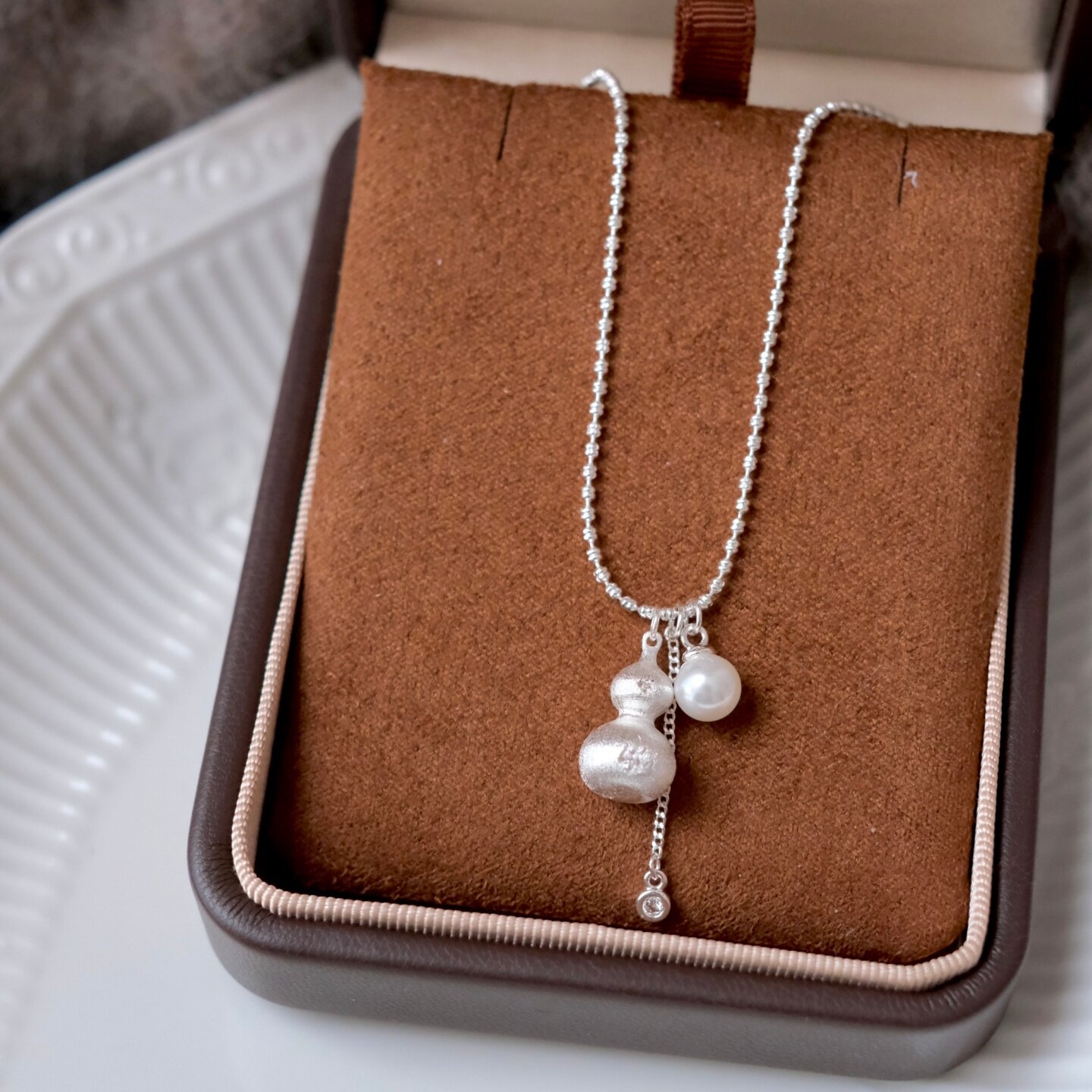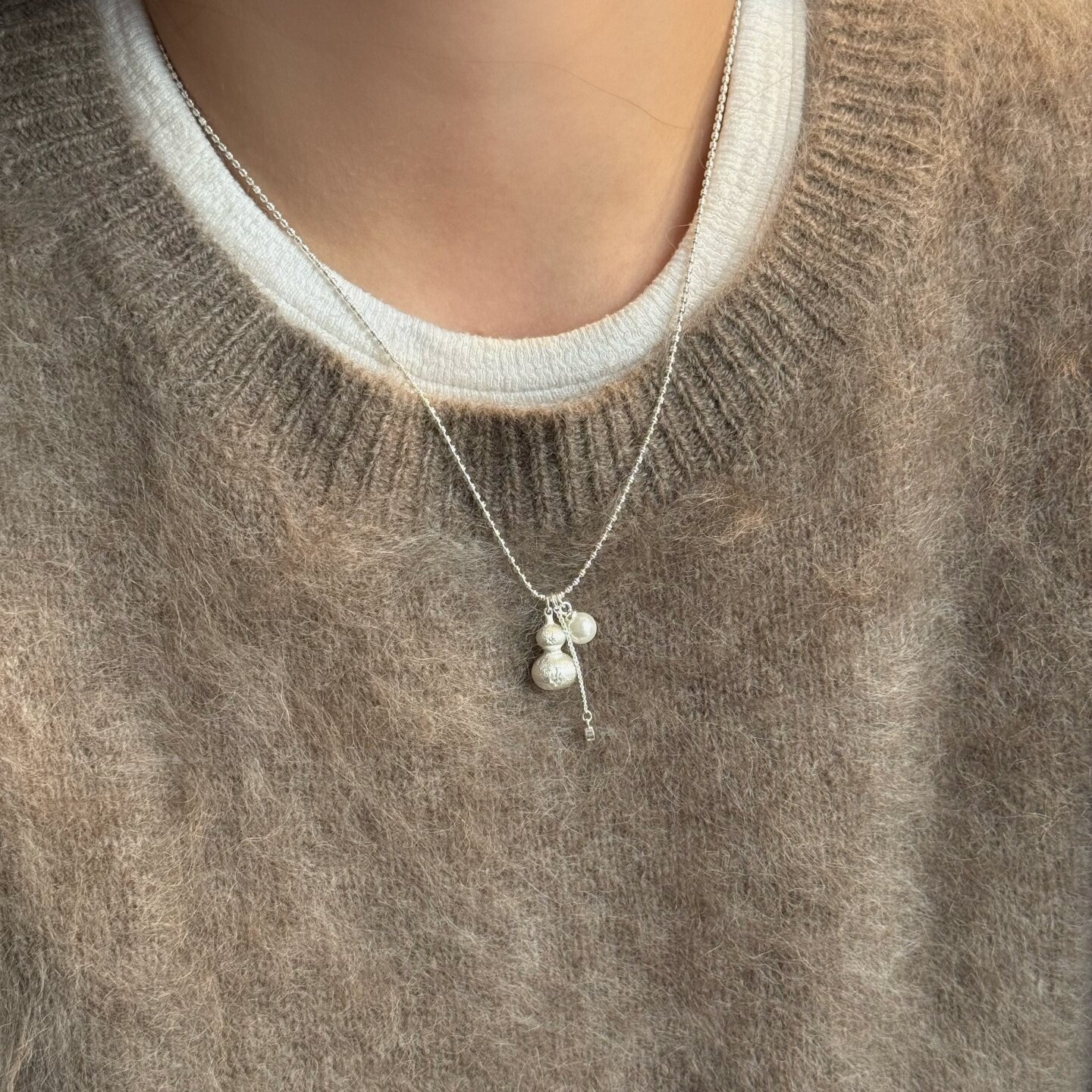 《錾刻葫芦》轻奢国风高级感银色拉丝实心福禄珍珠吊坠项链毛衣链