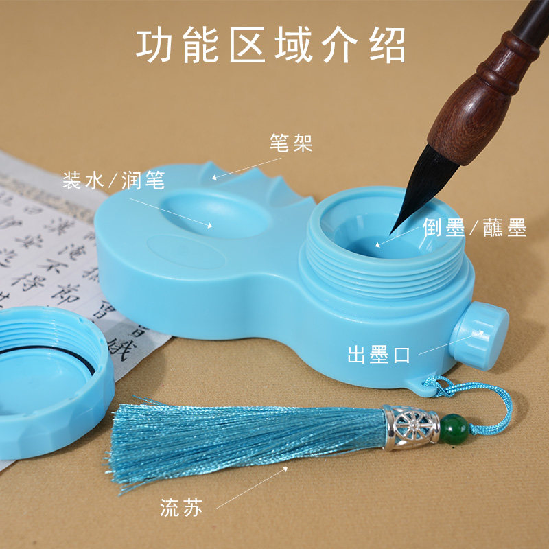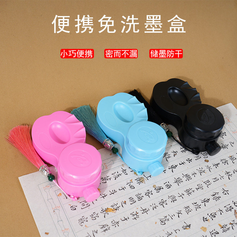 轩义堂便携式防漏墨盒毛笔墨汁砚台初学者写毛笔字书法专用墨碟免洗笔搁漏嘴墨盒带盖防漏墨汁密封多功能砚台