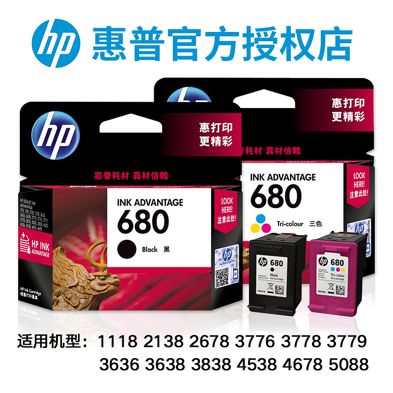 原装HP惠普680墨盒黑色彩色3636 3638 3838 2678 5088 2676 2677 4678 4538 3776 hp680 惠普打印机墨盒680