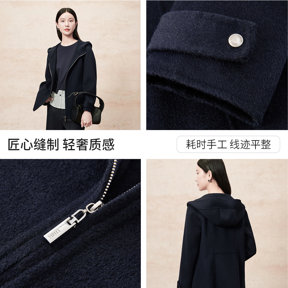 【羊绒】FINITY菲妮迪毛呢外套2025年冬季新款简约双面呢大衣女
