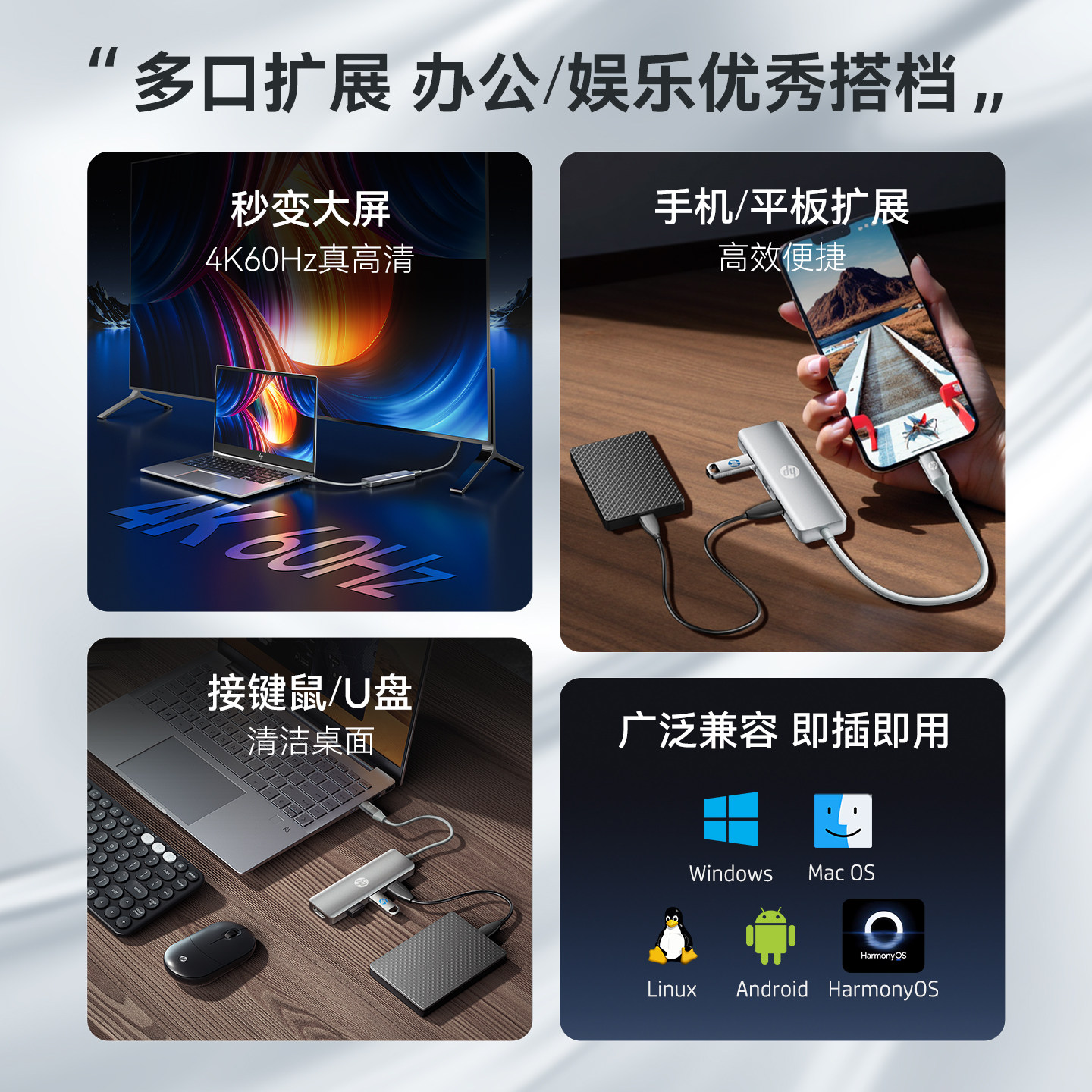 HP惠普星芒拓展坞typec转换usb3.0分线扩展器多接口适用于苹果安卓手机平板MacBook笔记本电脑投屏充电转接口