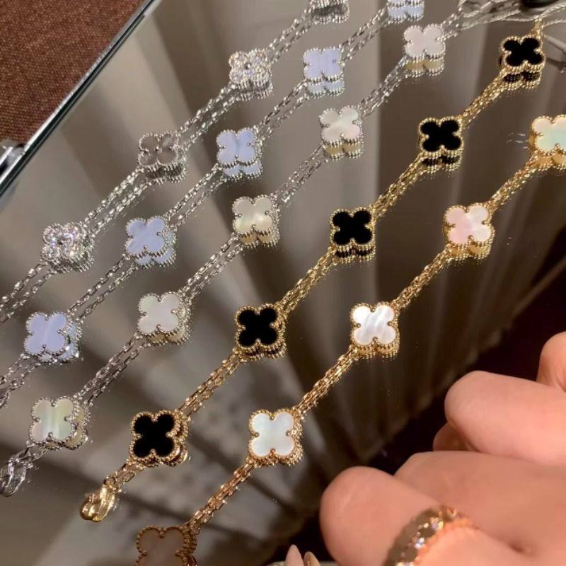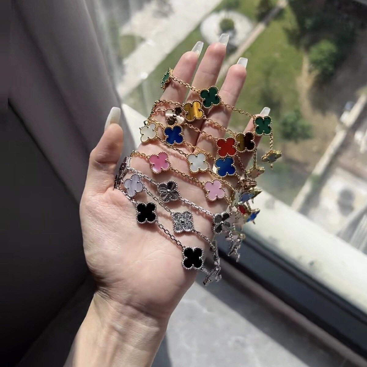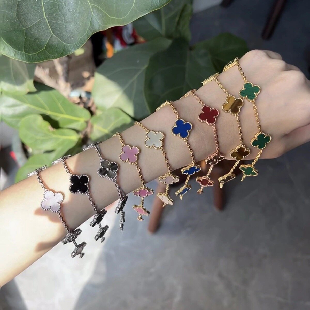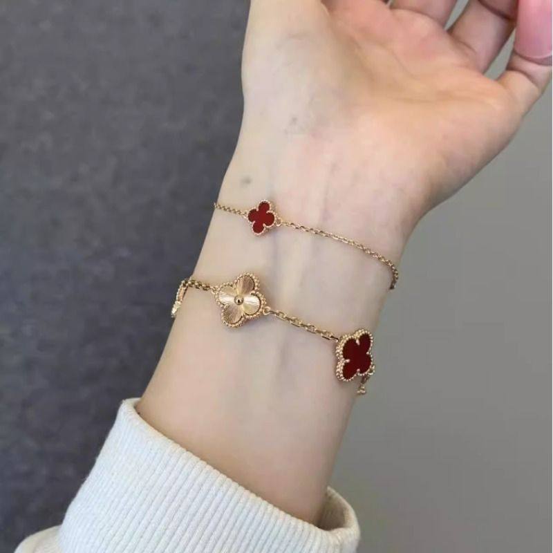 红玉髓镭射四叶草五花手链女18K玫瑰金轻奢叠戴手饰高级感轻奢