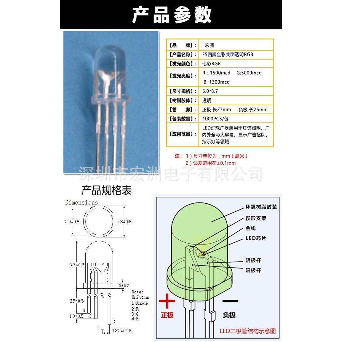 5MM圆头有边共阴RGB F5四脚红绿蓝共阴 LED灯珠